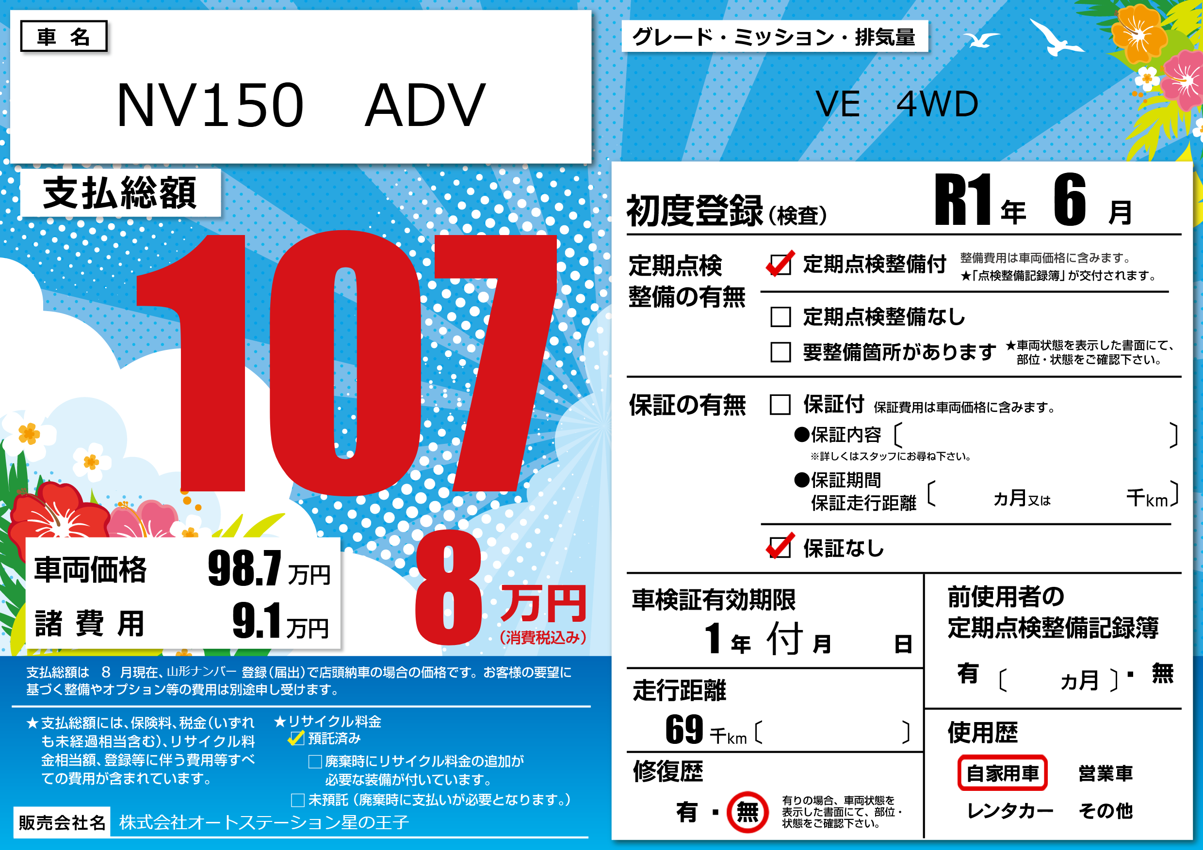 | 車検制限 | 1年 付月 - 日 | ||