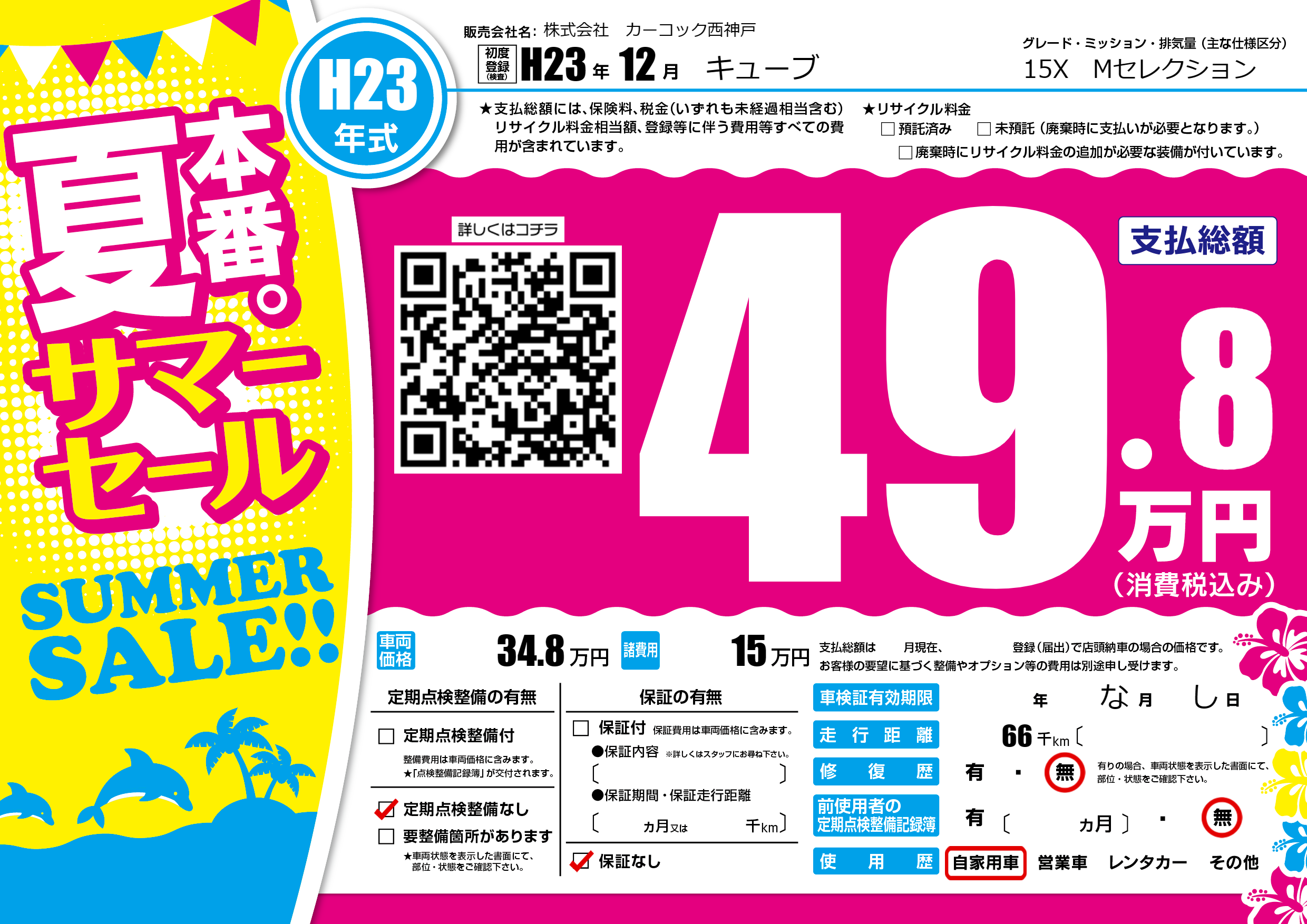 | 走行キロ | 6.6万km | 初年度登録 | H23年12月 |
