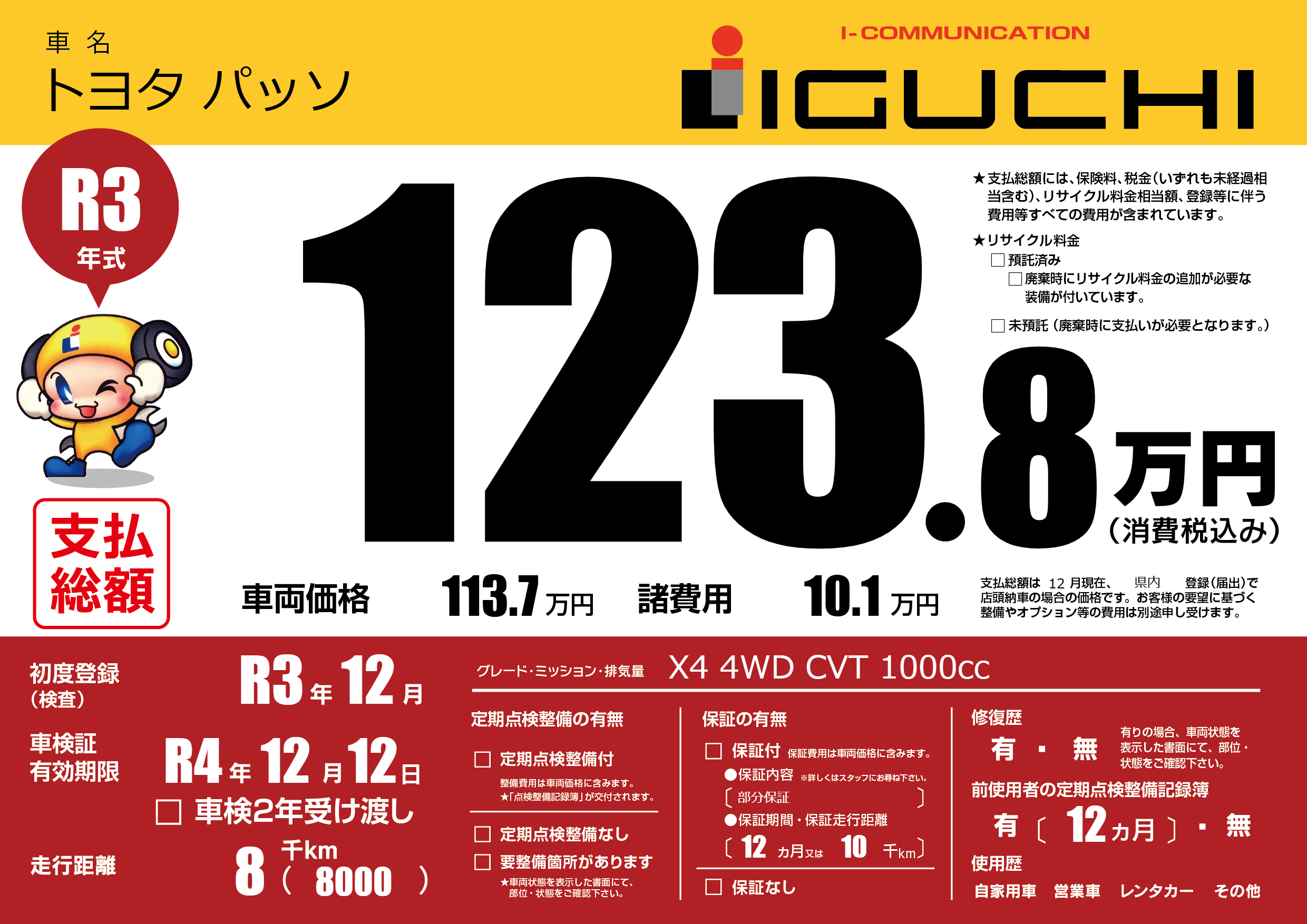 | 車検制限 | R4年 12月 12日 | ||