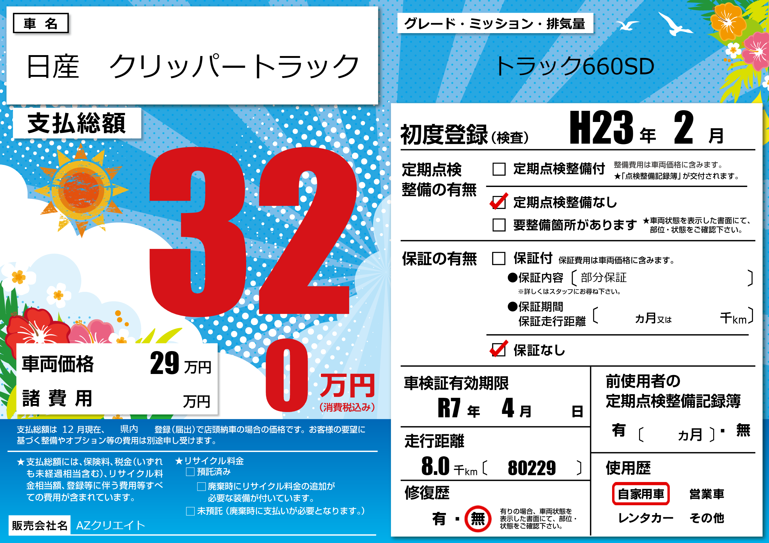 | 車名 | 日産 クリッパートラック | グレード ミッション 排気量 |