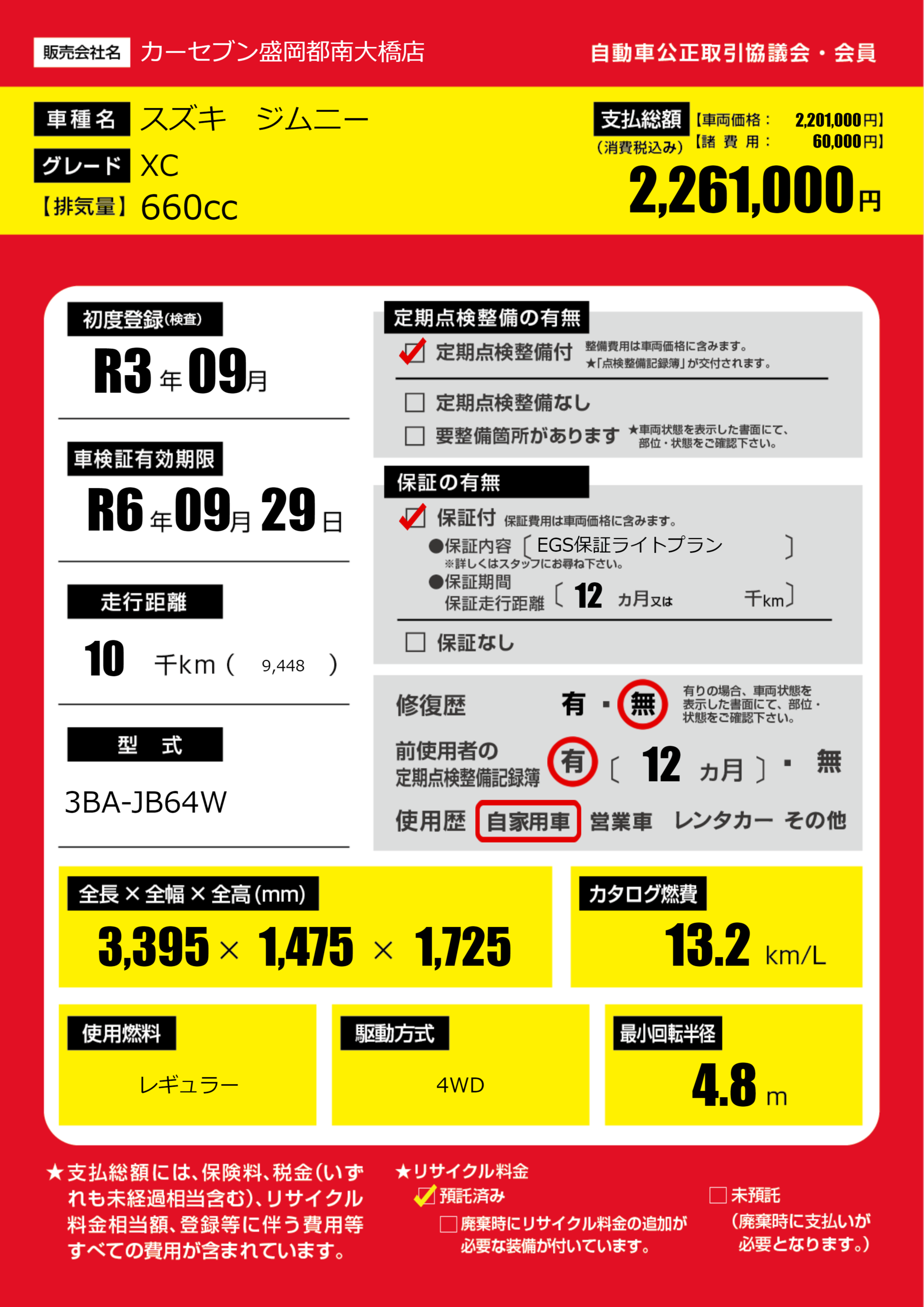 | 車検制限 | R6年 09月 29日 | ||