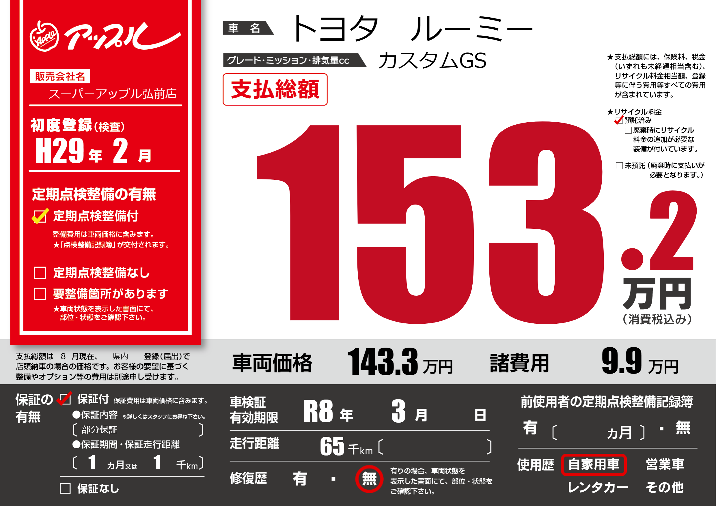 なし | 車検制限 | R8年3月---月 |