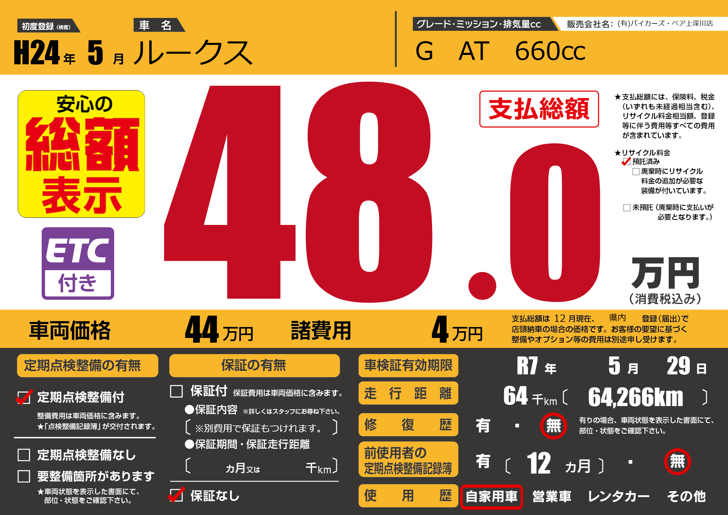 初年度登録 H24年5月