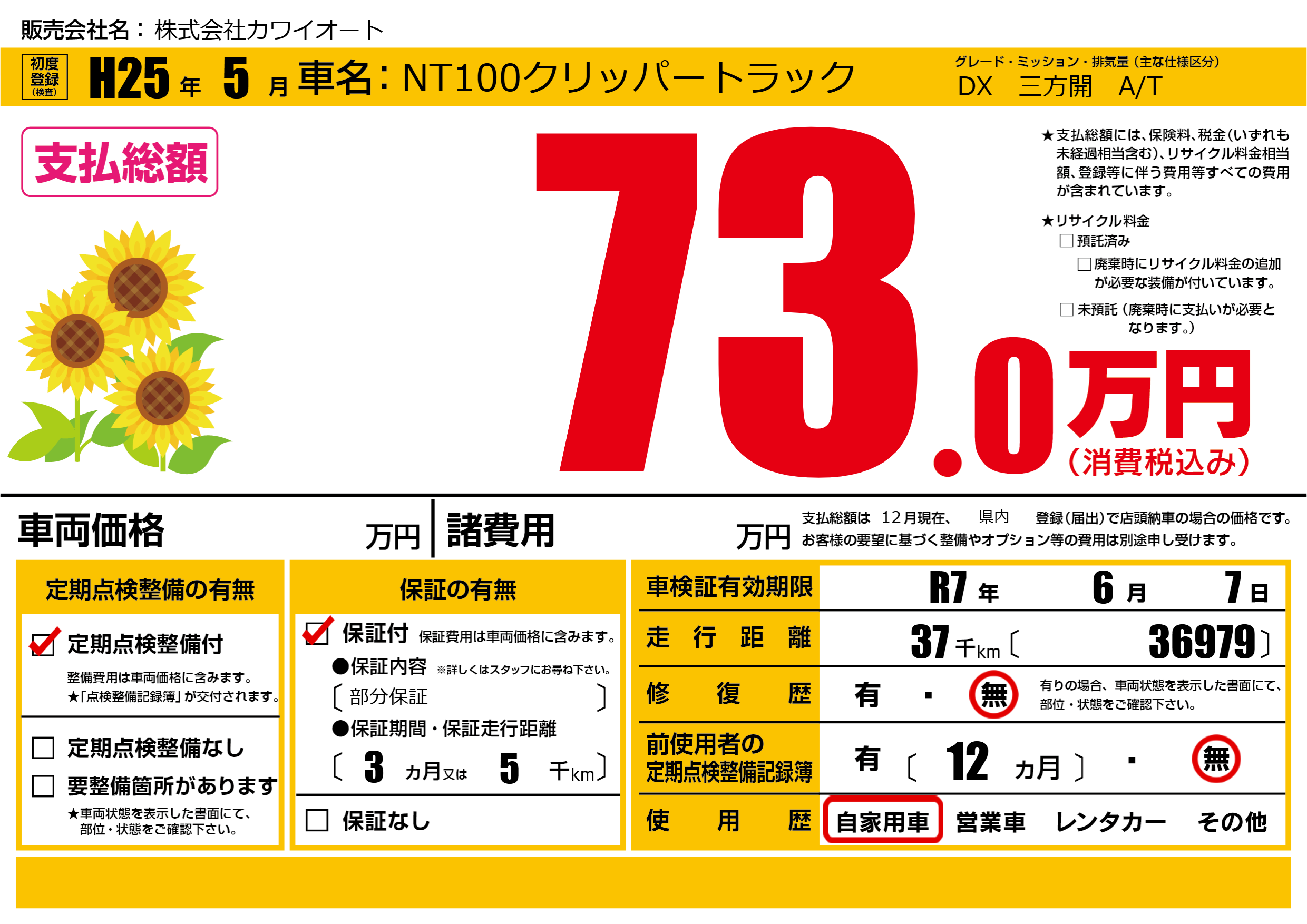 | 車名 | NT100クリッパートラック | グレード ミッション 排気量 |
