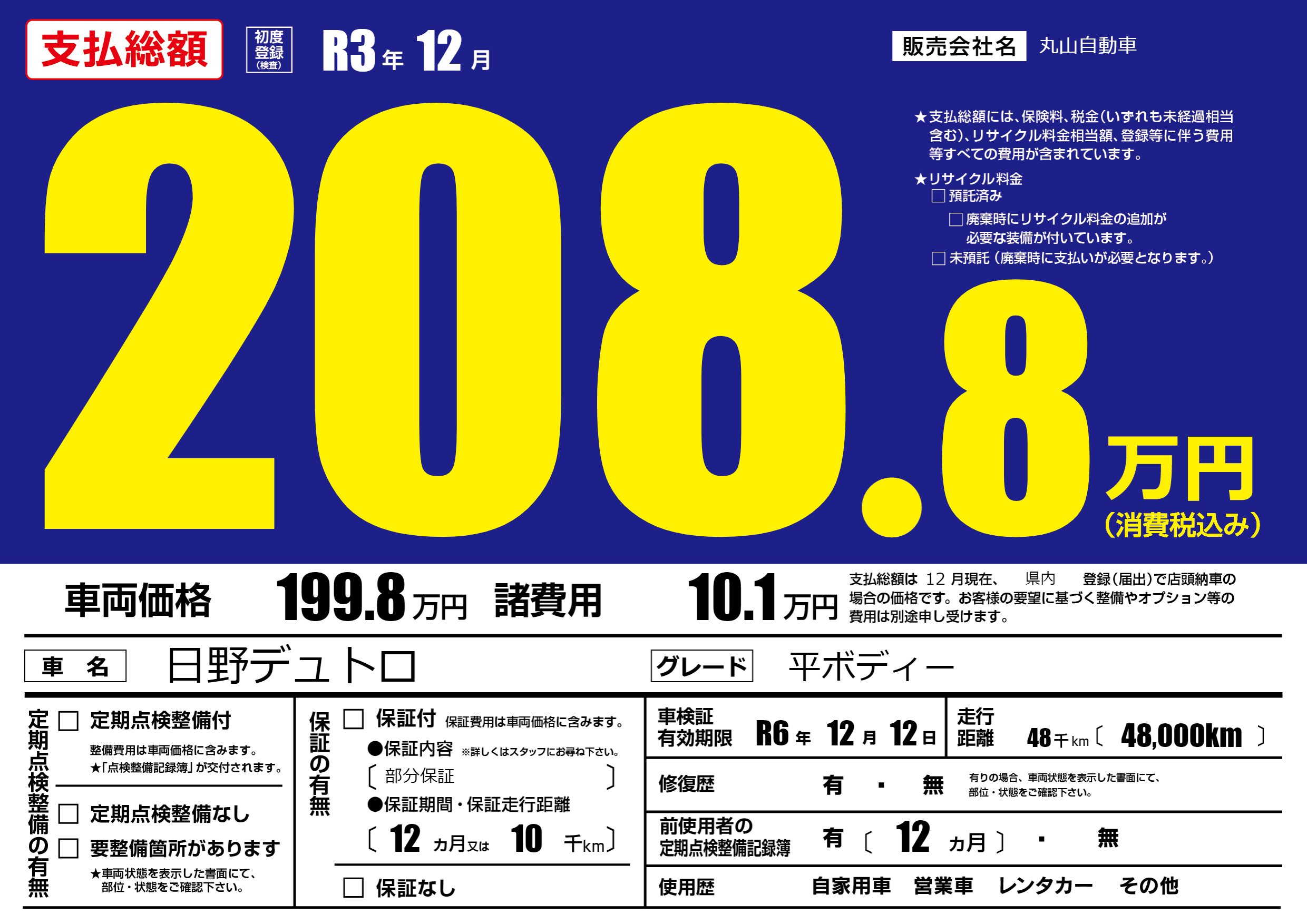 | 走行キロ | 4.8万km | 初年度登録 | R3年12月 |