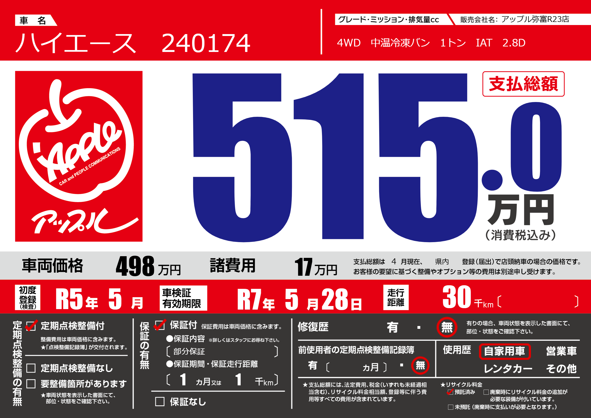 | 車名 | ハイエース 240174 | グレード ミッション 排気量 |