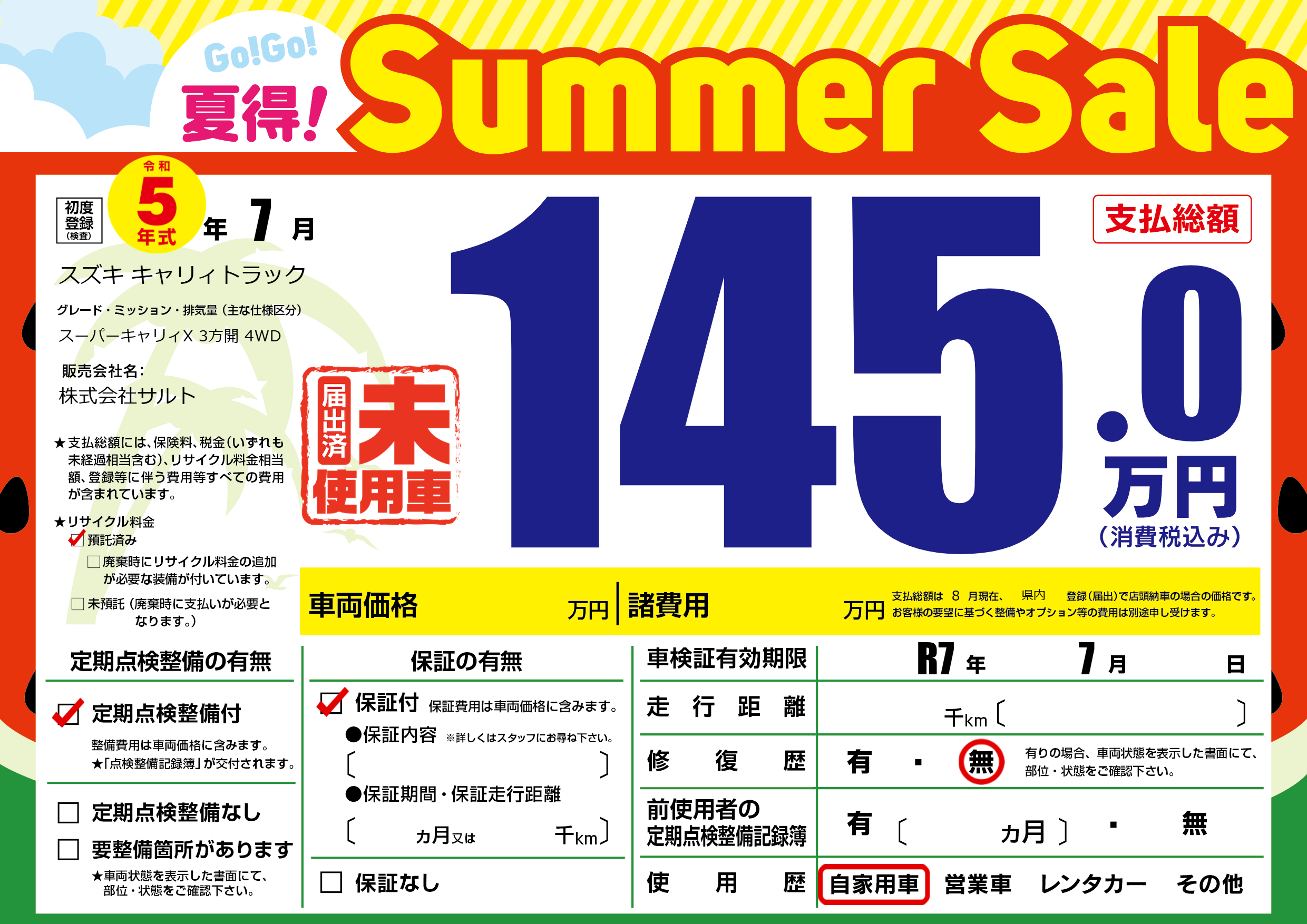 なし | 車検制限 | R7年7月---月 |