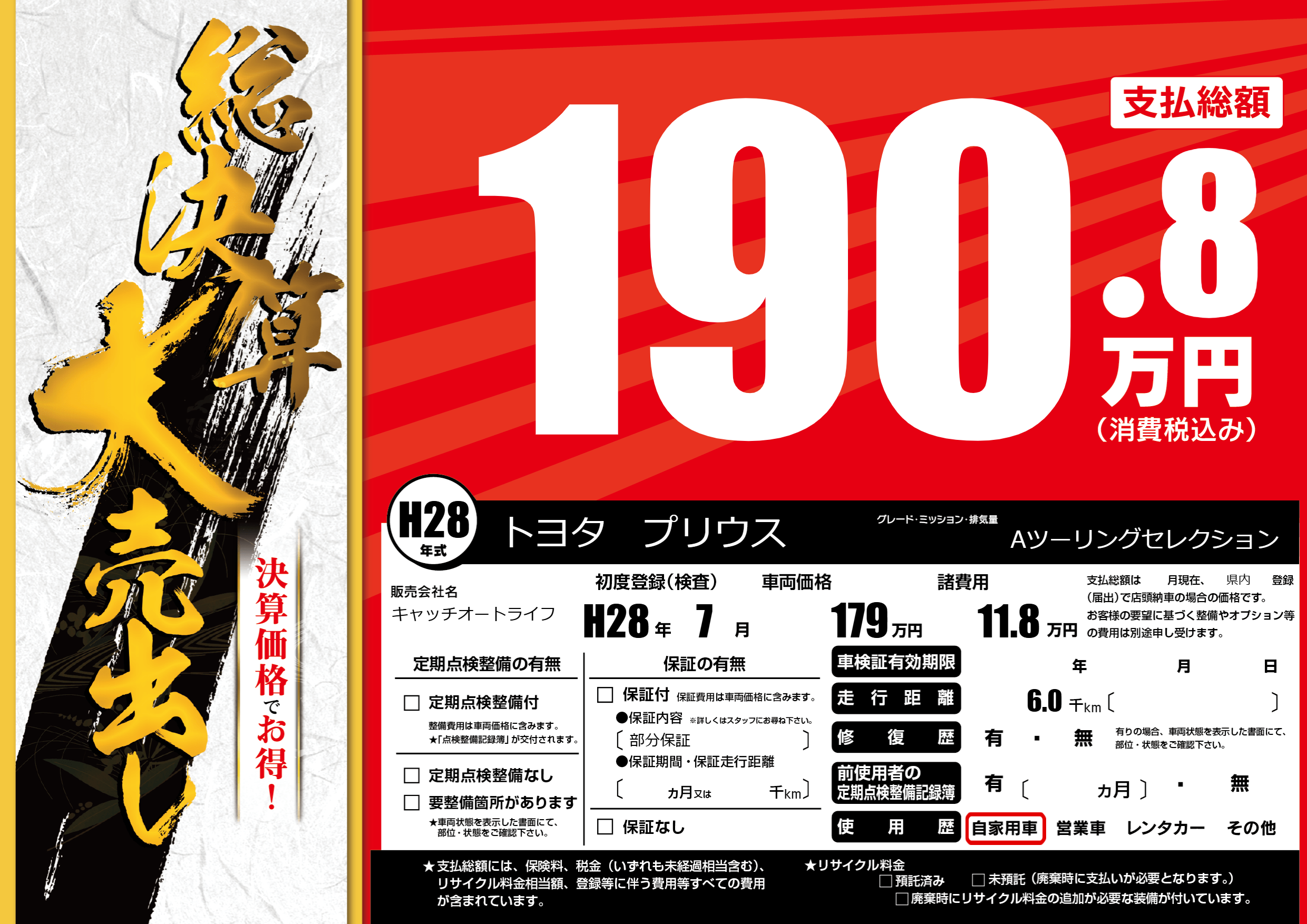 | 車名 | トヨタ プリウス | グレード ミッション 排気量 |