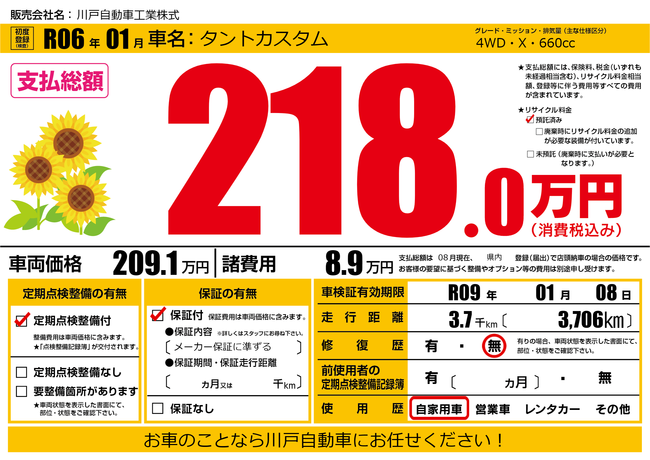 保証付き 保証内容(メーカー保証に準ずる) ---ヶ月または()千kmまで |