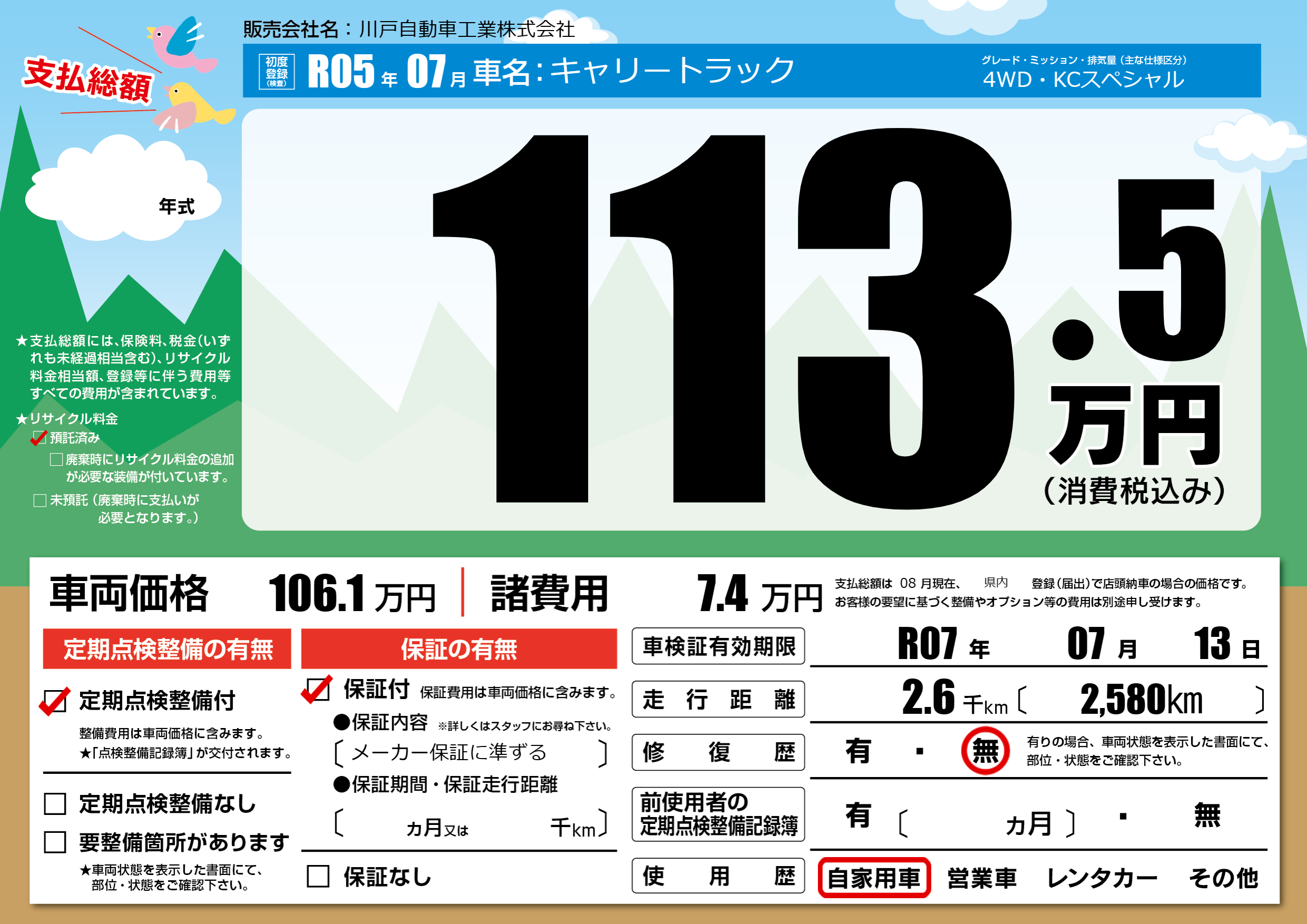 保証付き 保証内容(メーカー保証に準ずる) ヶ月または千km |