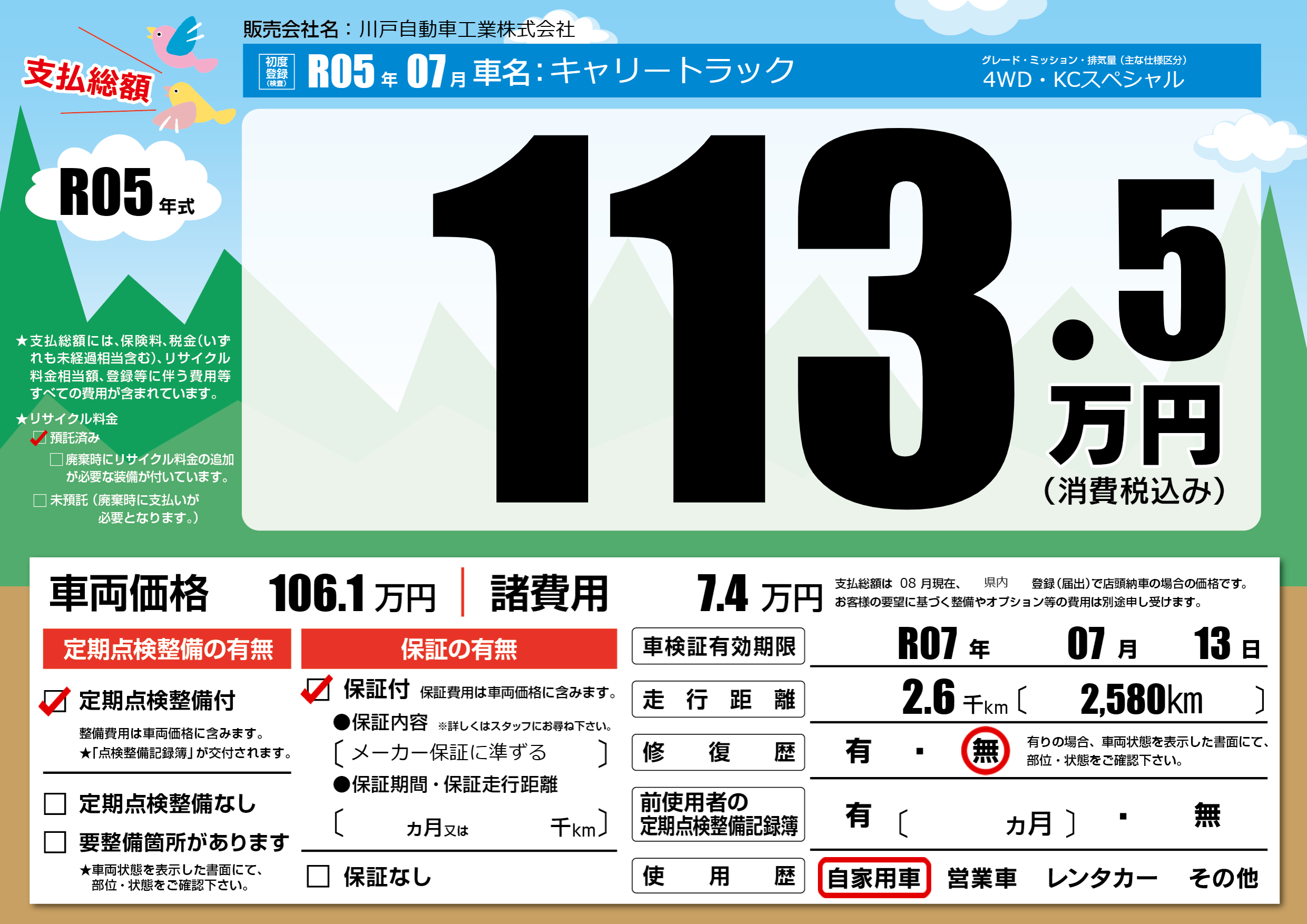 保証内容(メーカー保証に準ずる) ヶ月または千km