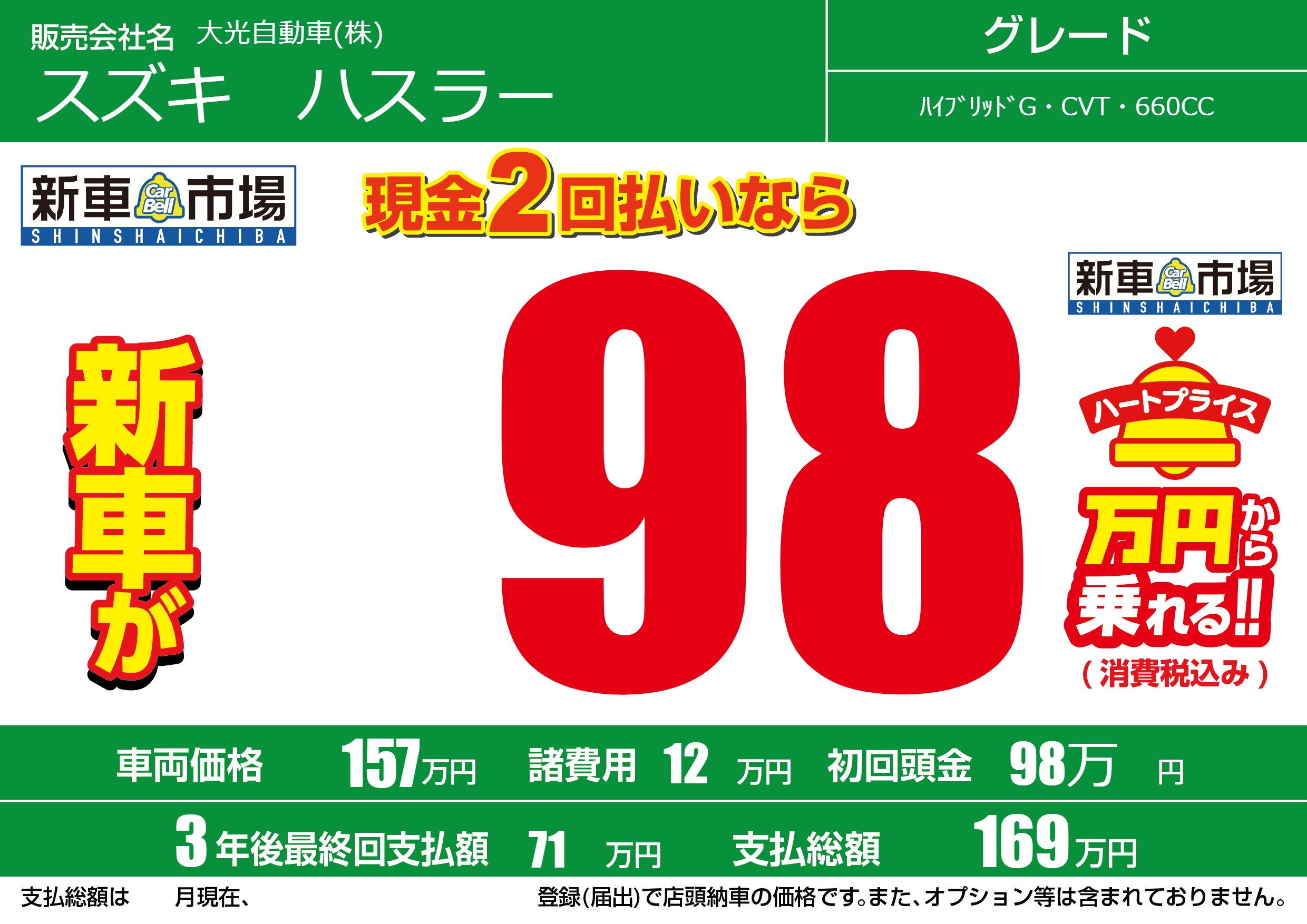 | 車名 | スズキ ハスラー | グレード ミッション 排気量 |