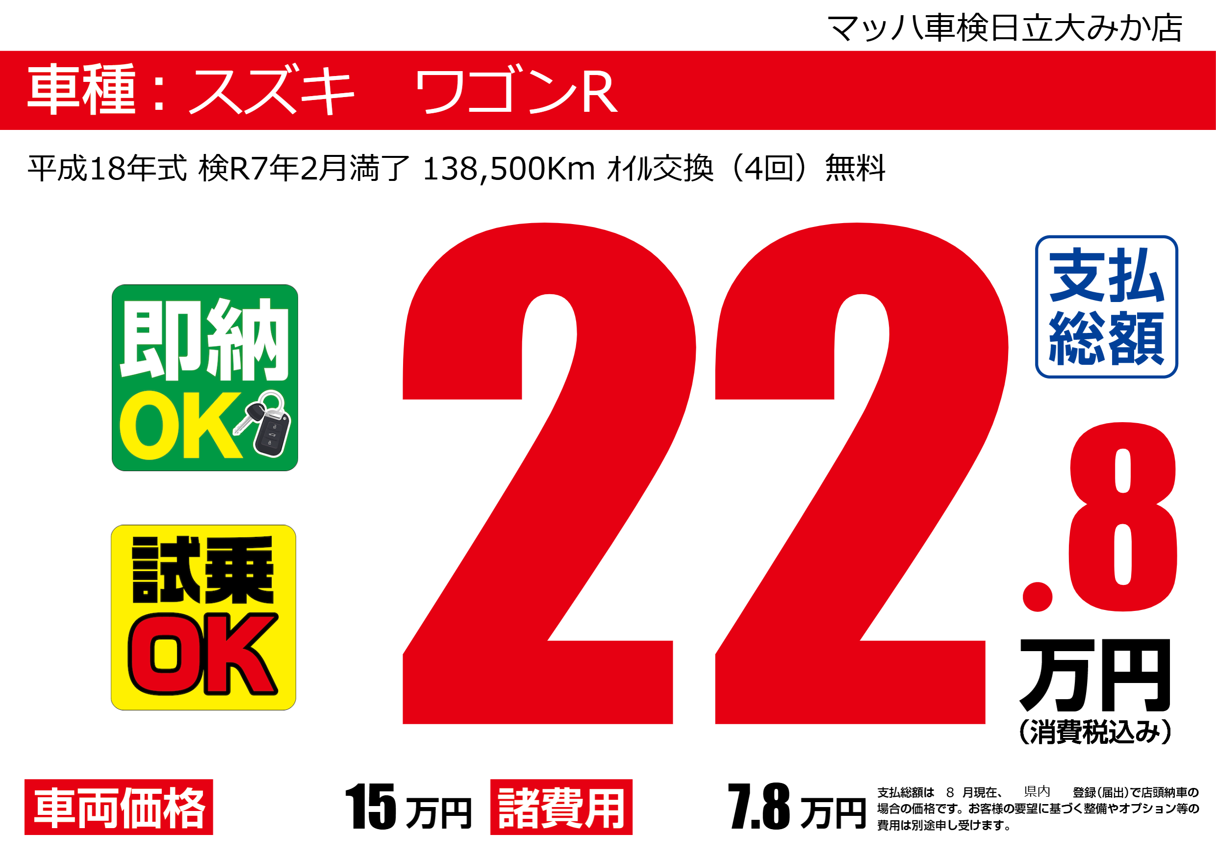 | 車名 | スズキ ワゴンR | グレード ミッション 排気量 |