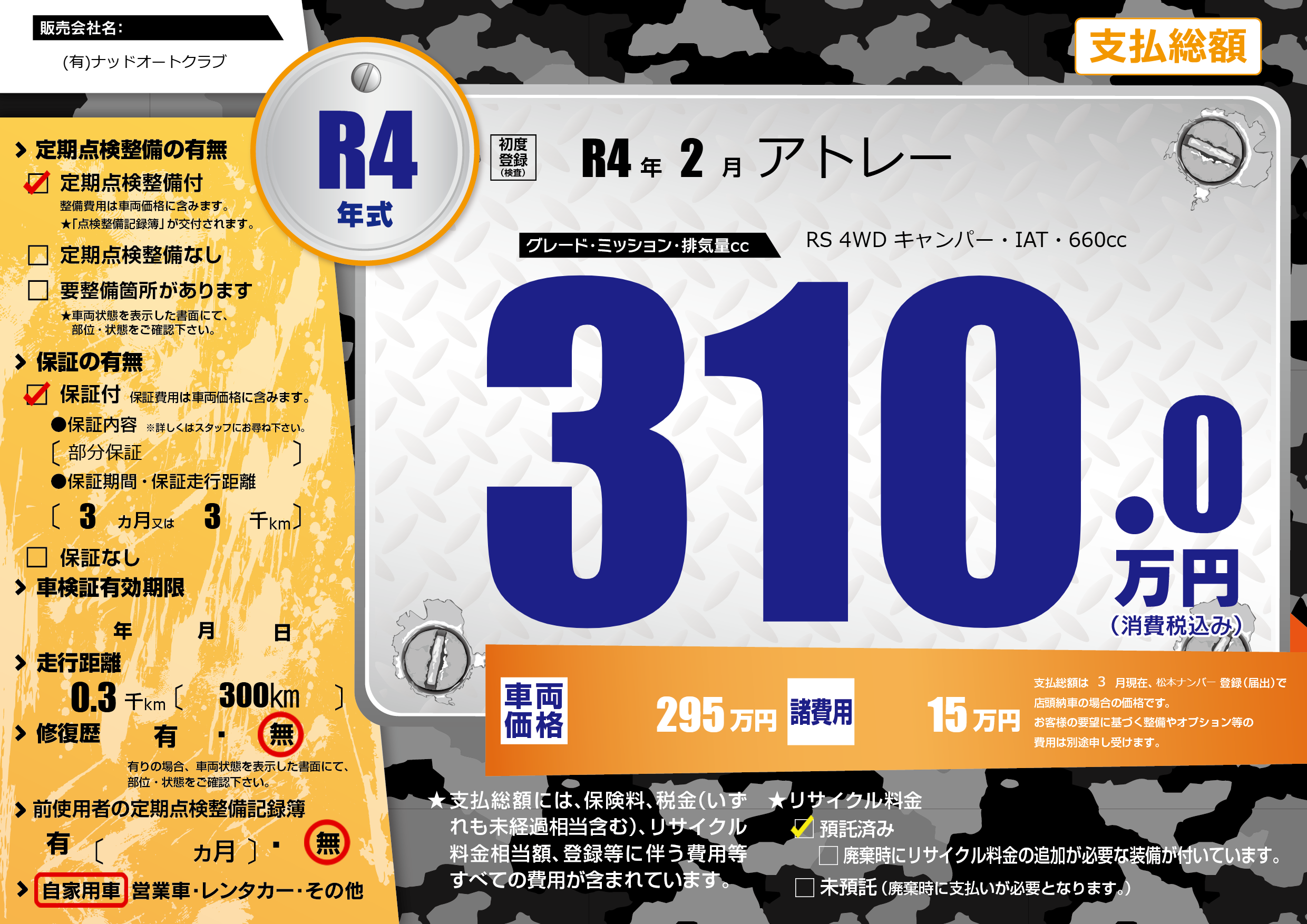 | 車名 | アトレー | グレード ミッション 排気量 |