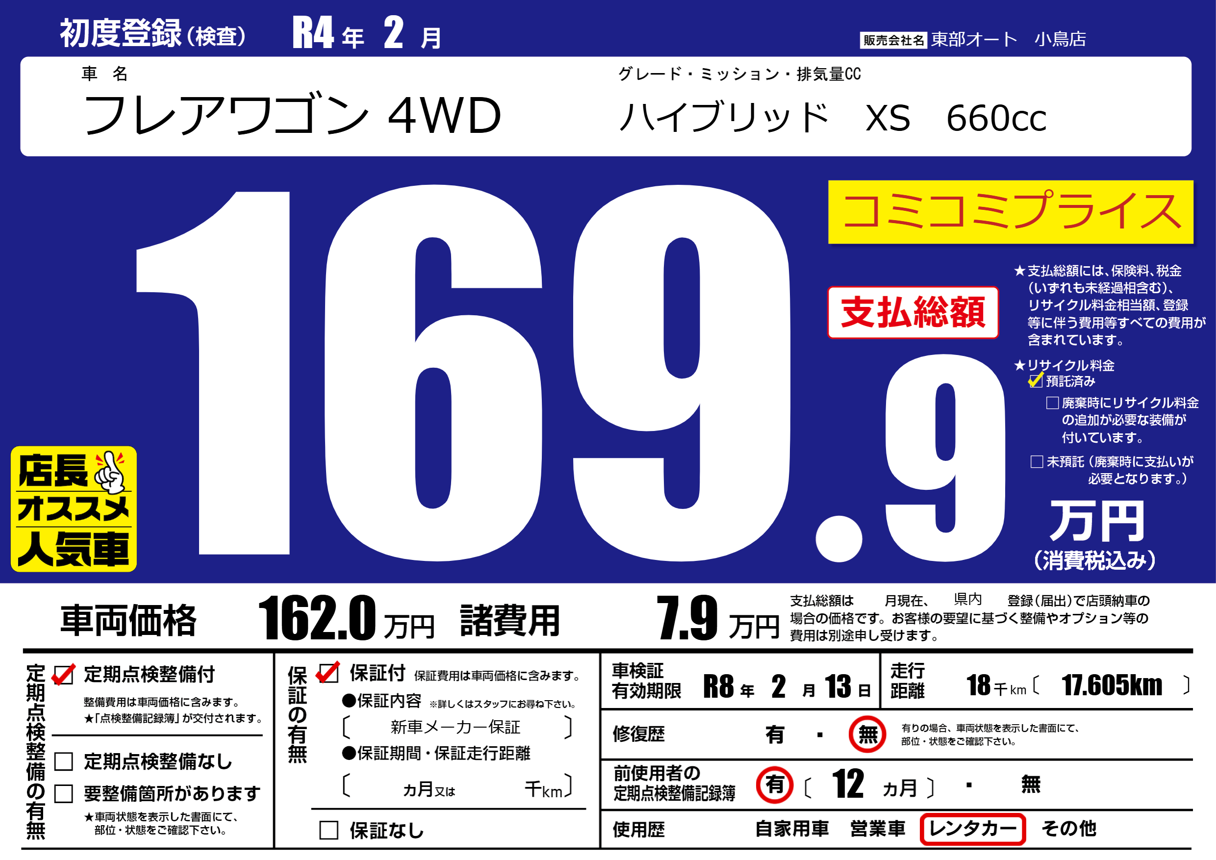 | 車検制限 | R8年 2月 13日 | ||