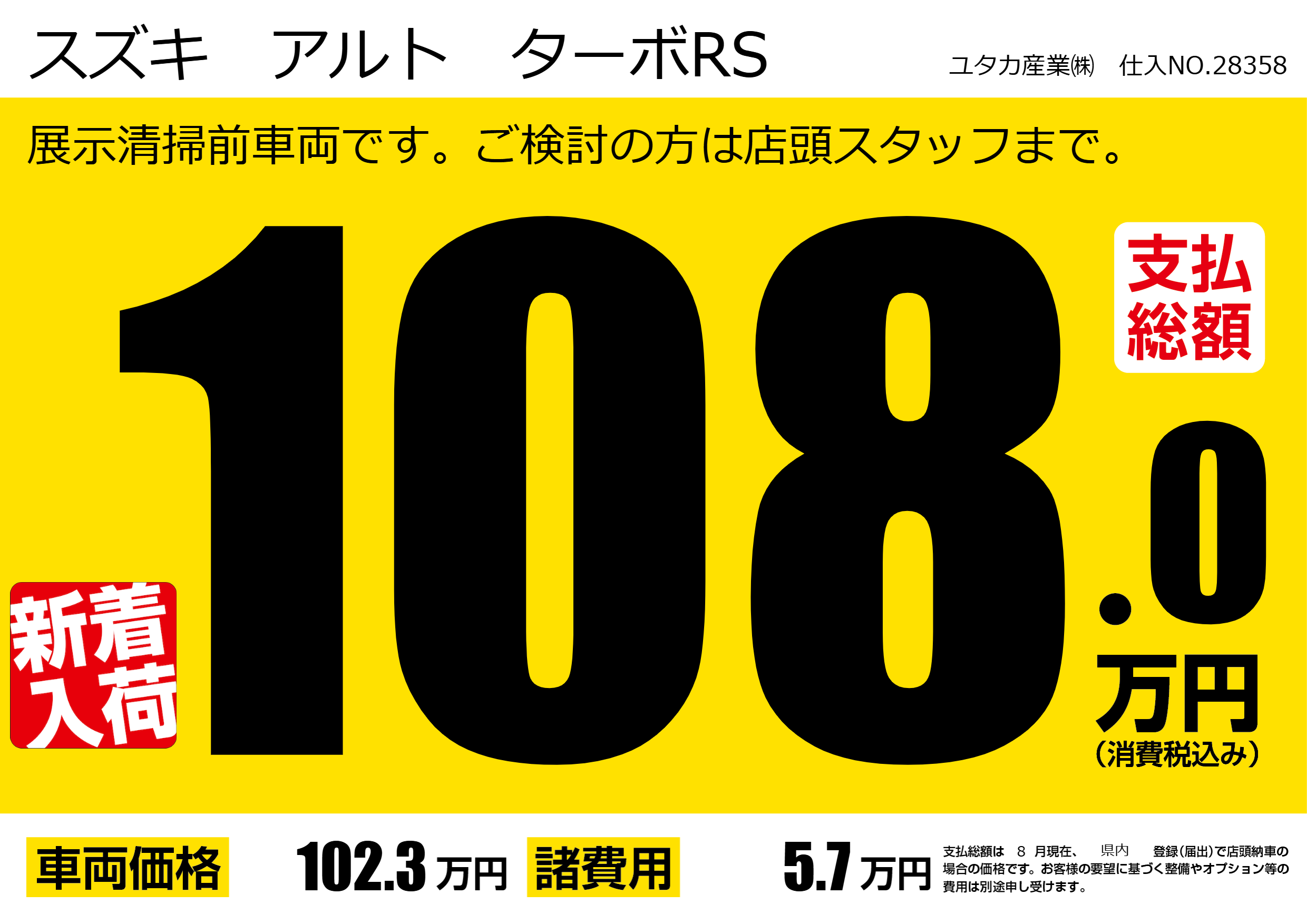 | 車名 | スズキ アルト ターボRS | グレード ミッション 排気量 |
