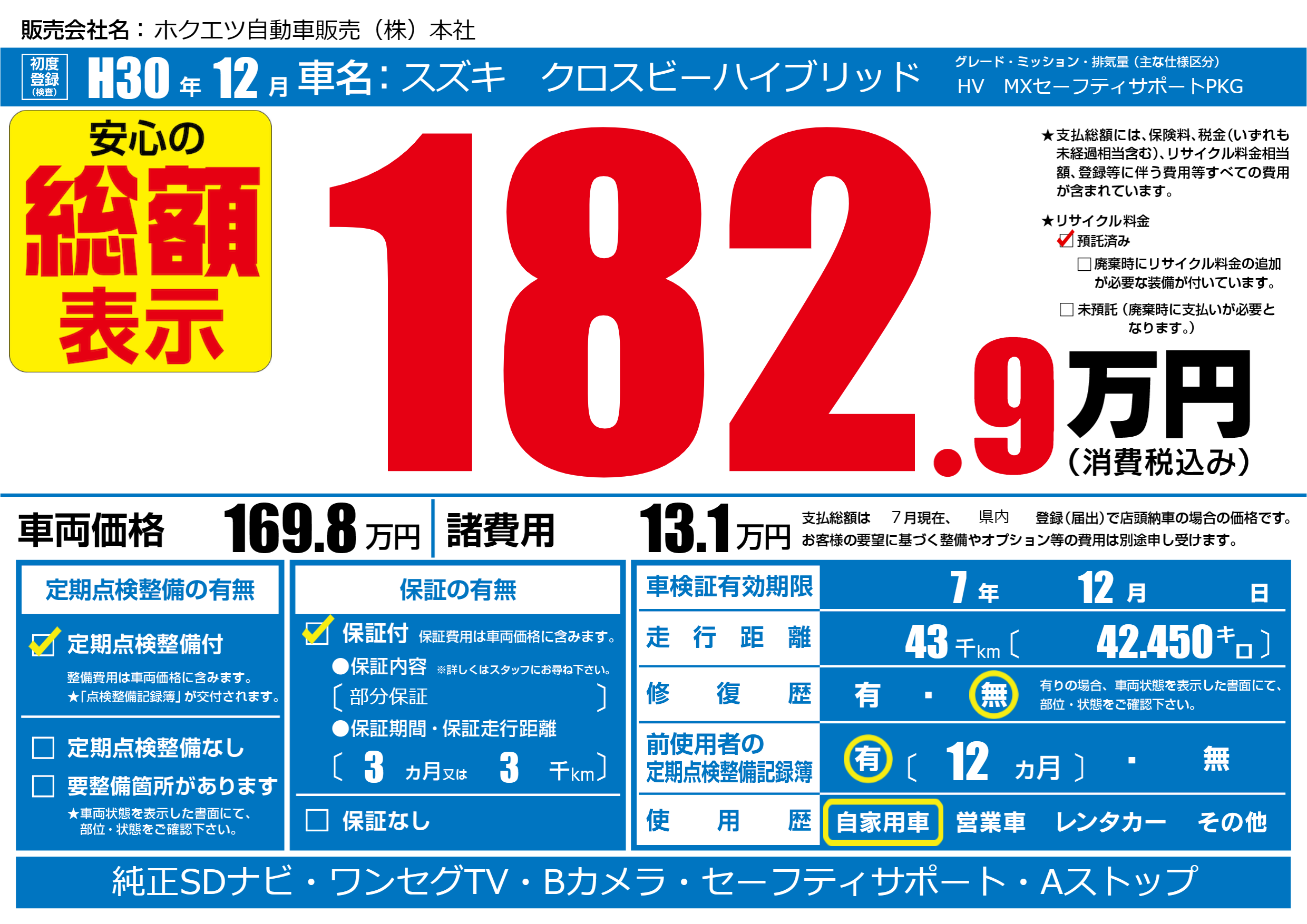 | 初年度登録 | H30年12月 | ||