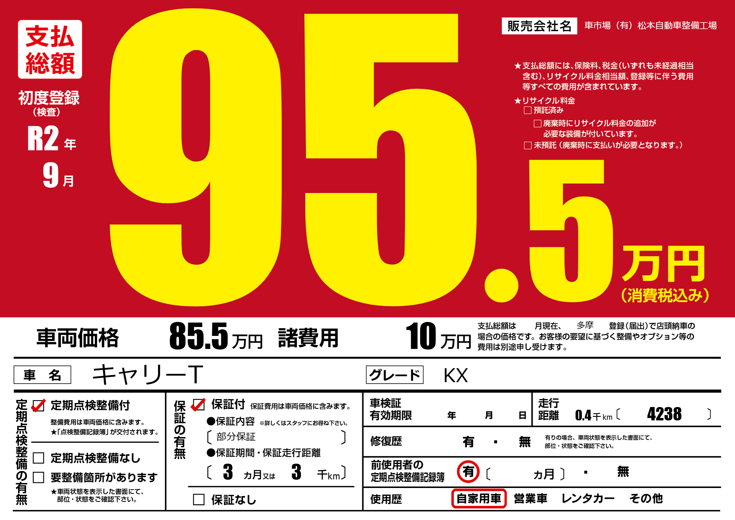 | 定期点検整備 | 定期点検整備あり | ||