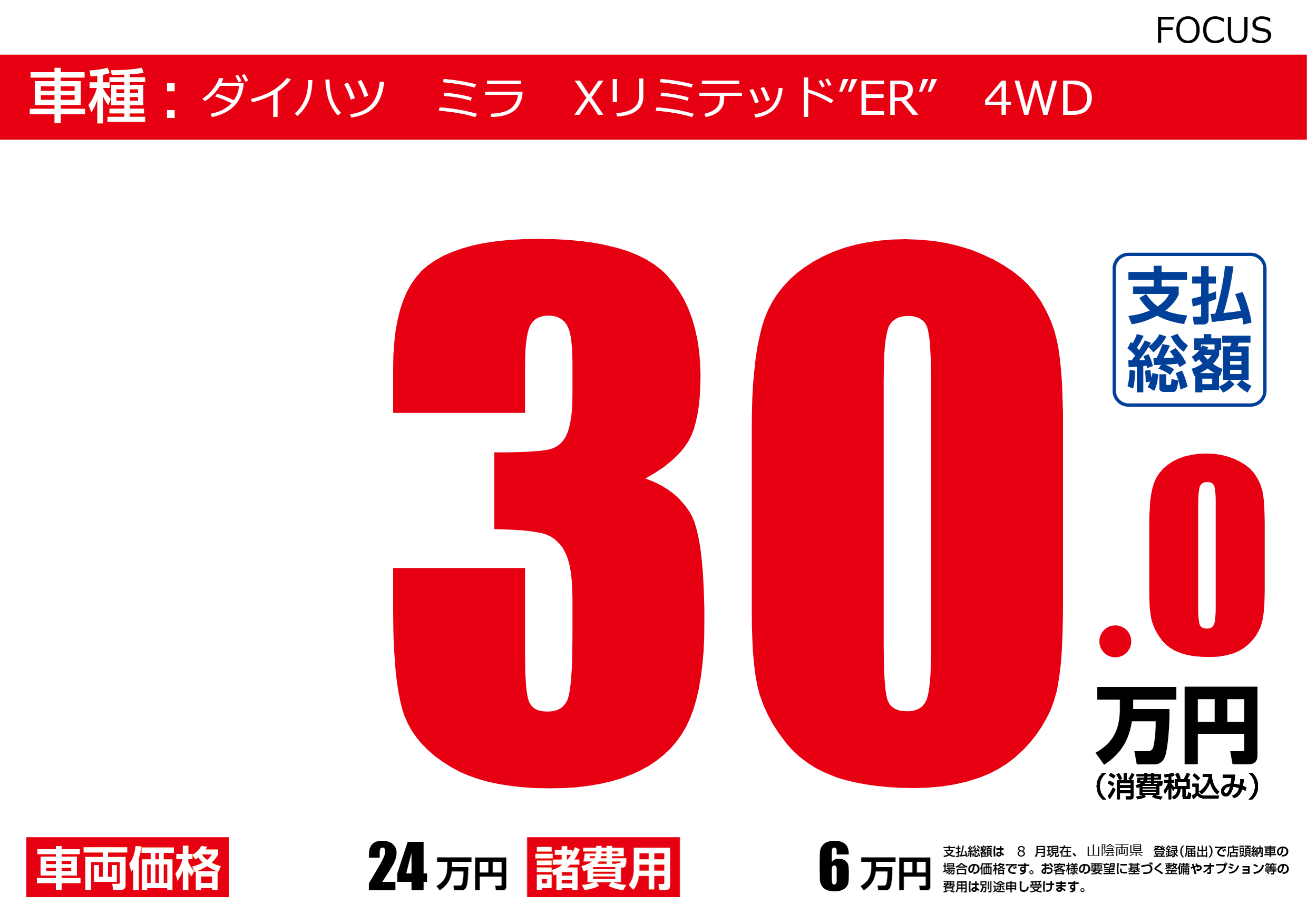 | 車名 | ダイハツ ミラ Xリミテッド”ER” 4WD | グレード ミッション 排気量 |