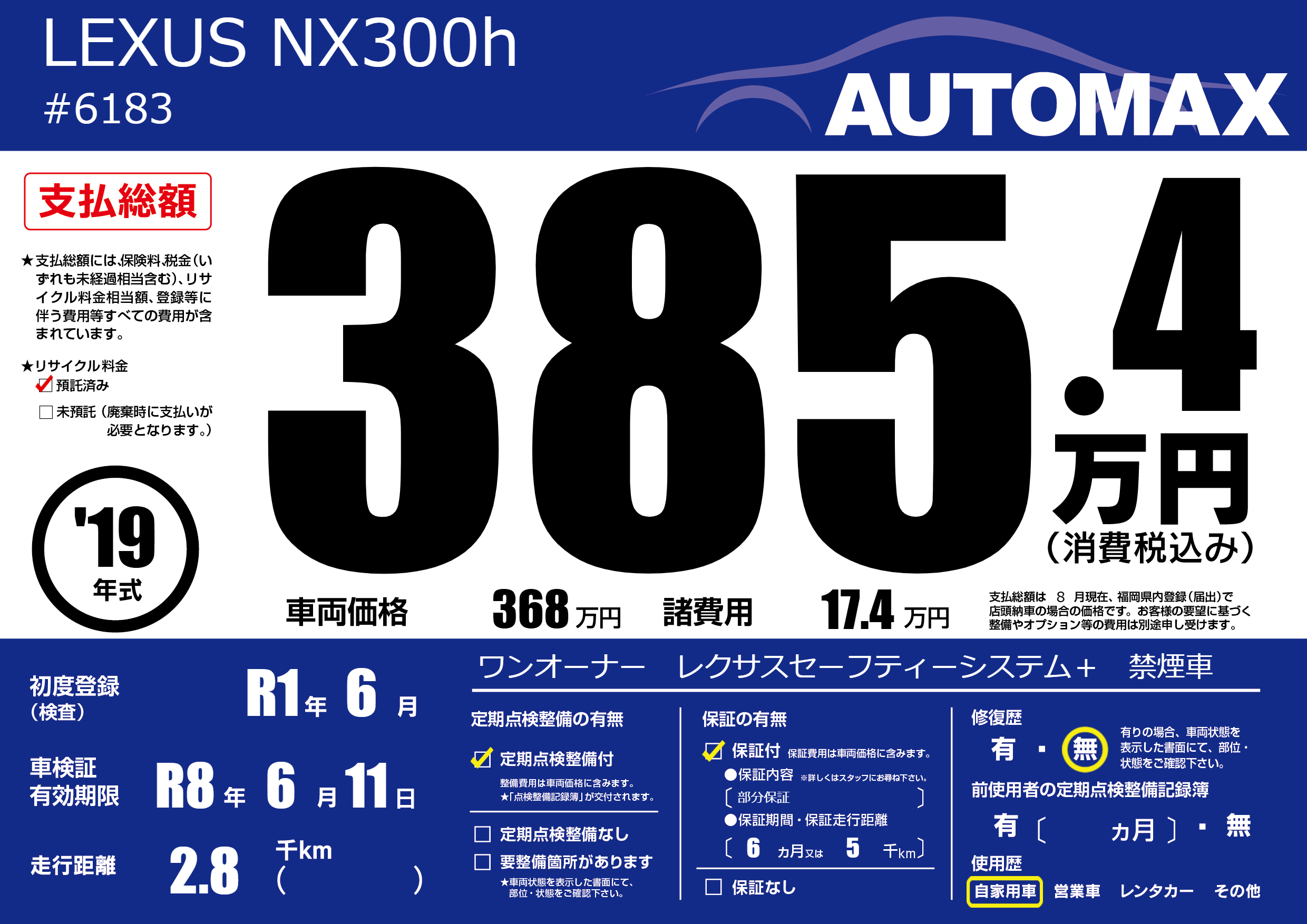 | 車名 | LEXUS NX300h | グレード ミッション 排気量 |