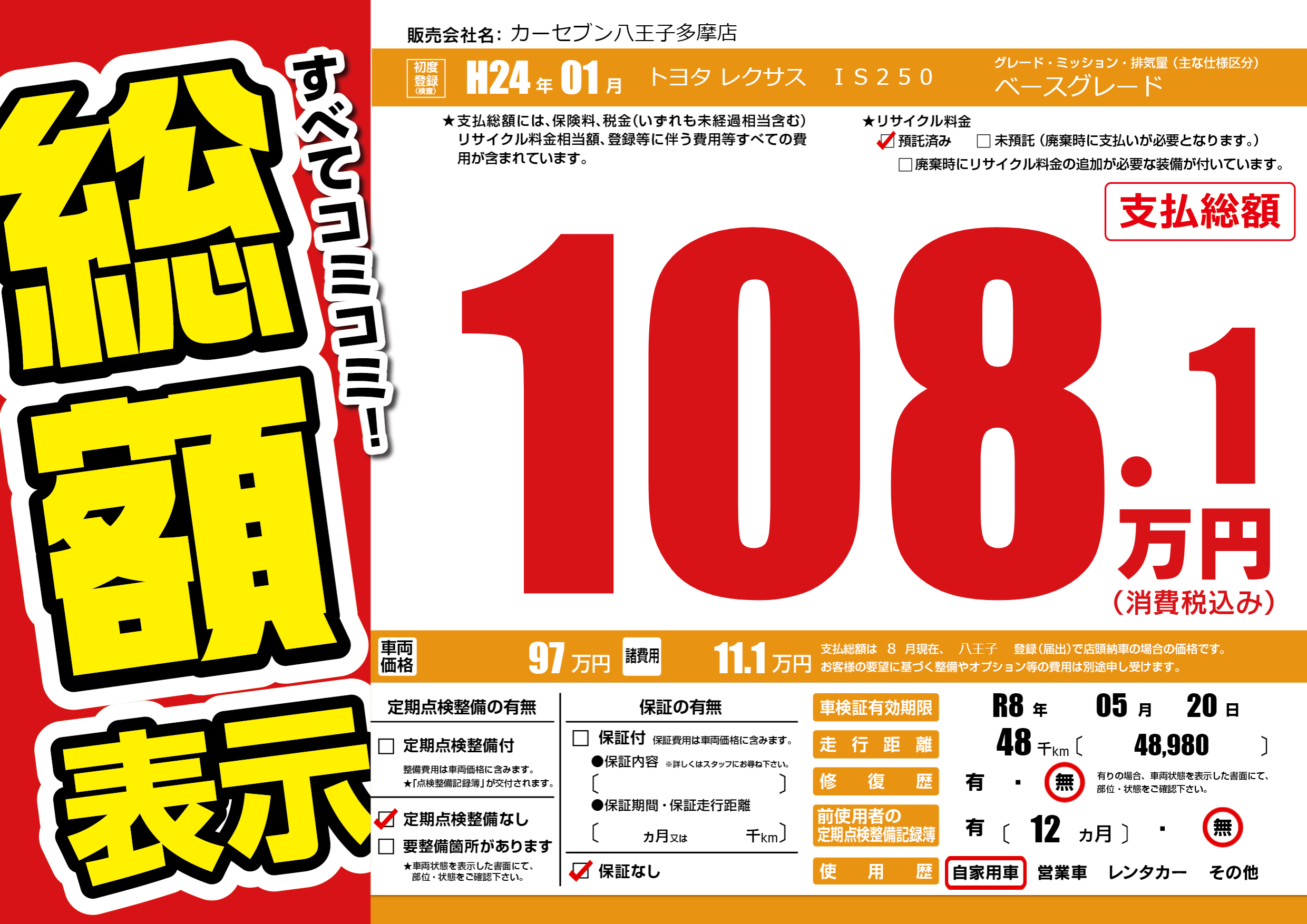 | 走行キロ | 4.8万km | ||