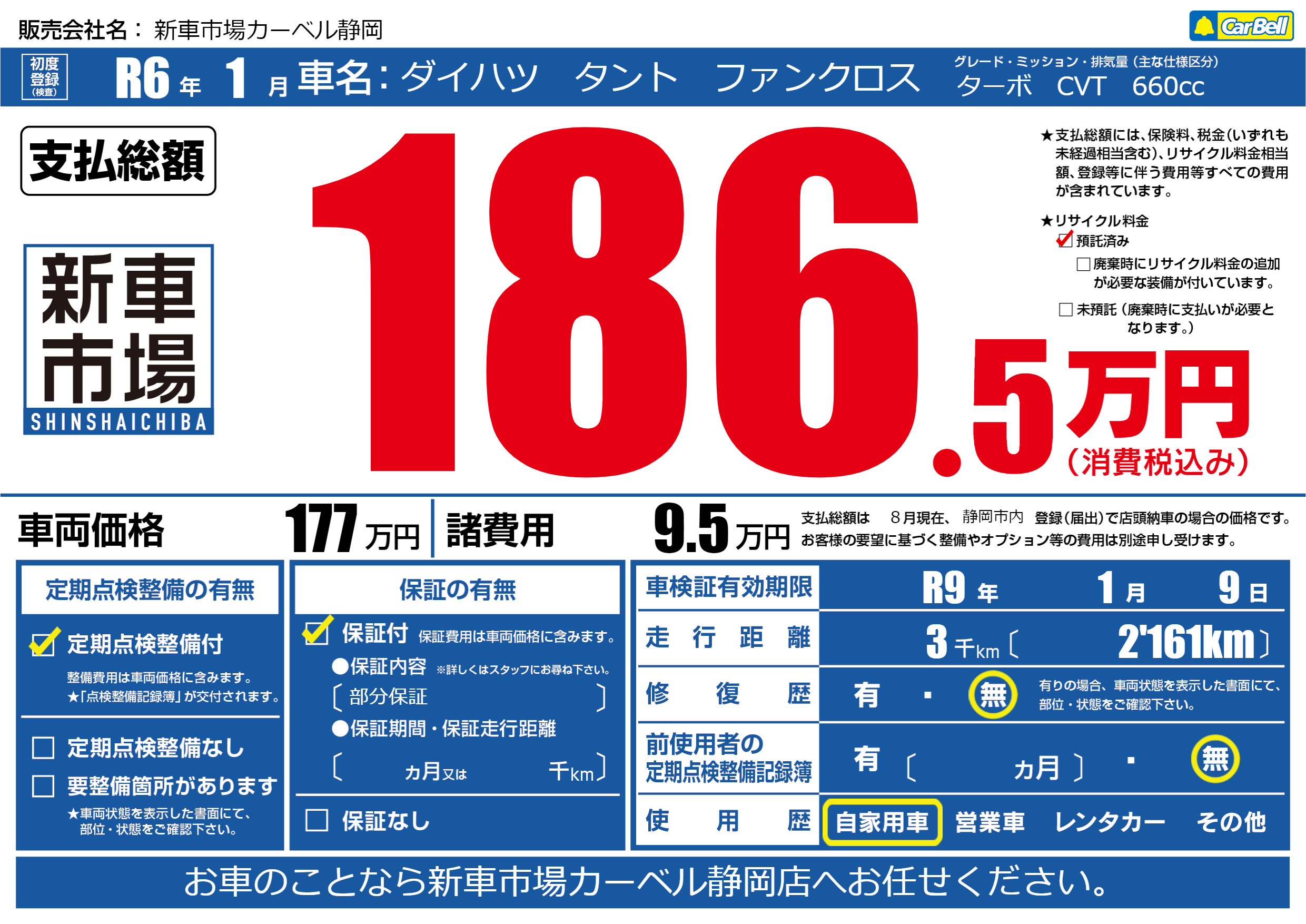 | 走行キロ | 0.3万km | 初年度登録 | R6年1月 |