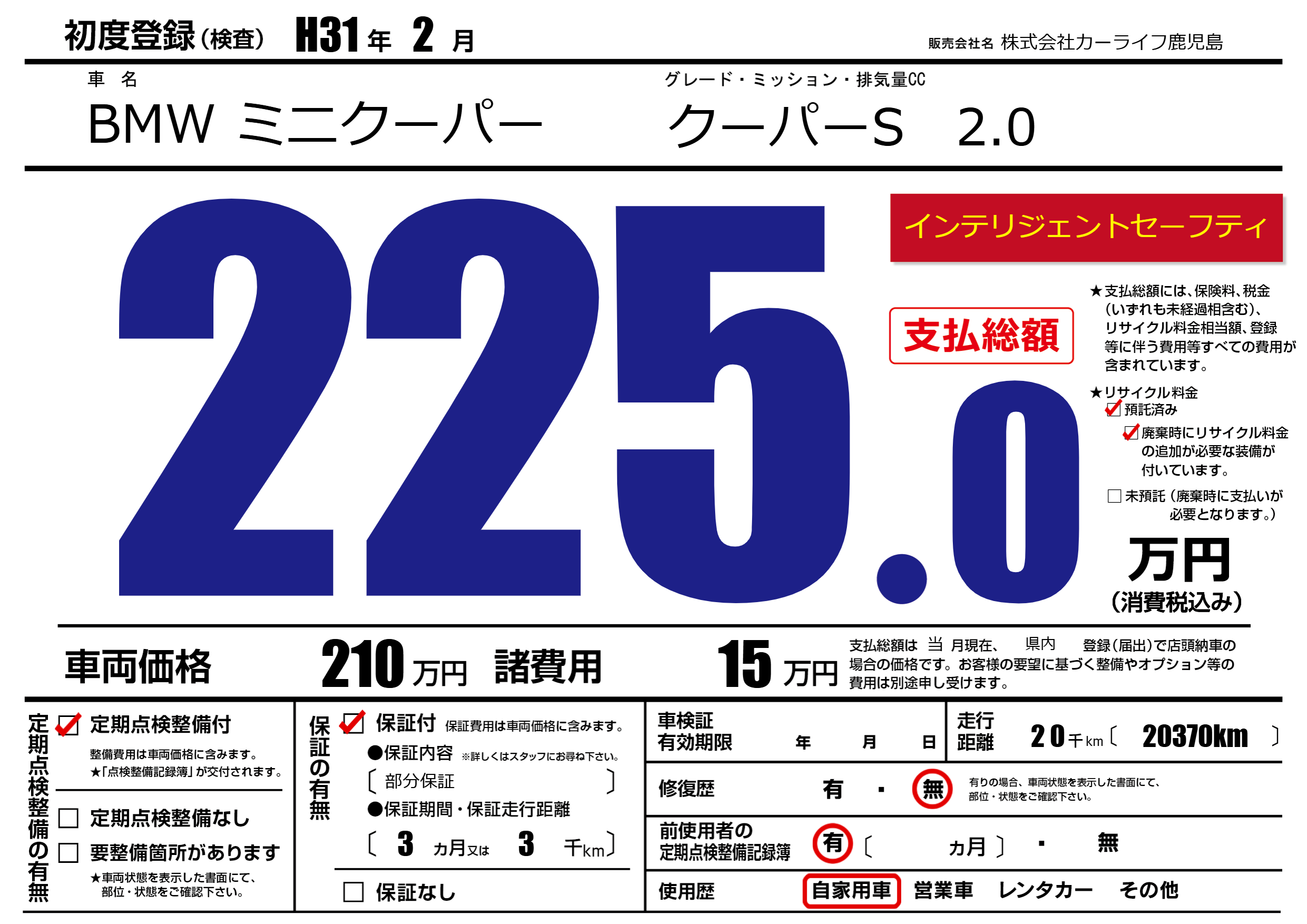 | 定期点検整備 | 定期点検整備あり | ||