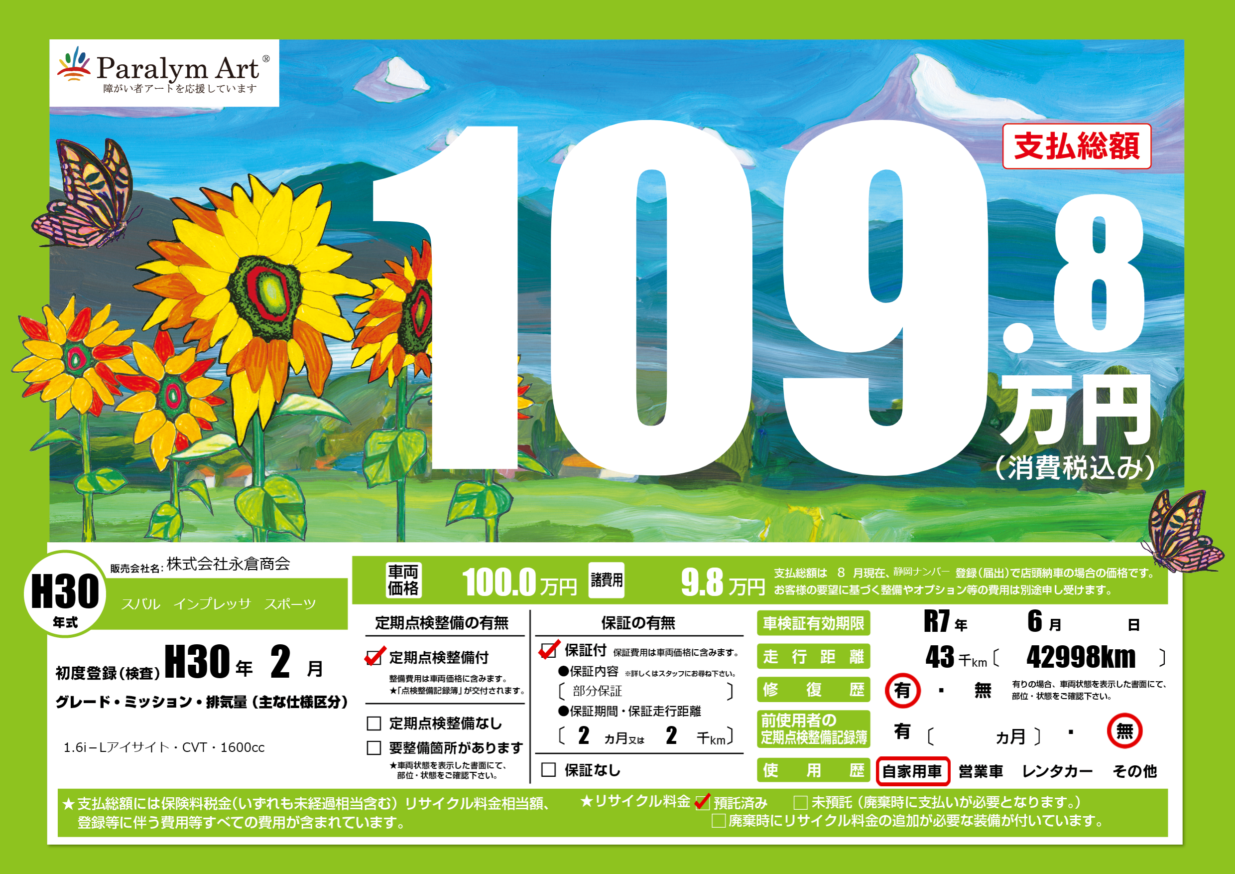 | 車名 | スバル インプレッサ スポーツ | グレード ミッション 排気量 |