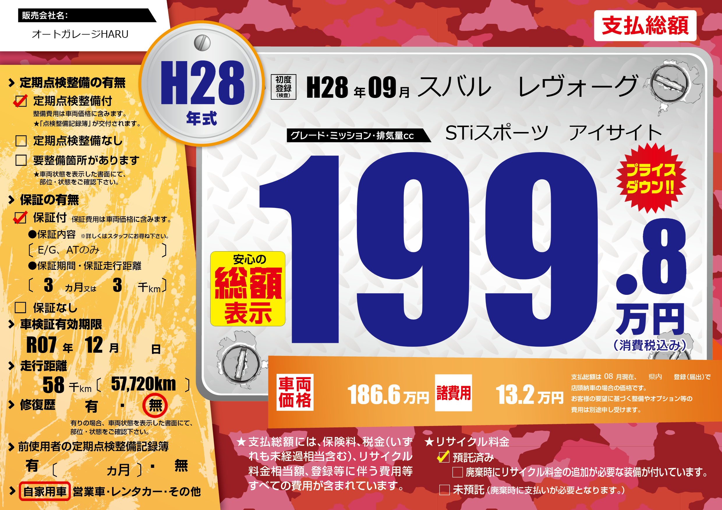 なし | 車検制限 | R07年12月---月 |
