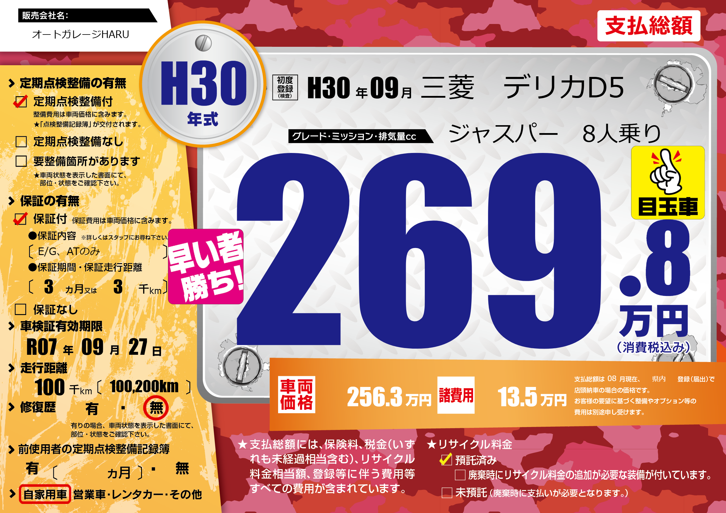 | 車検制限 | R07年 09月 27日 | ||