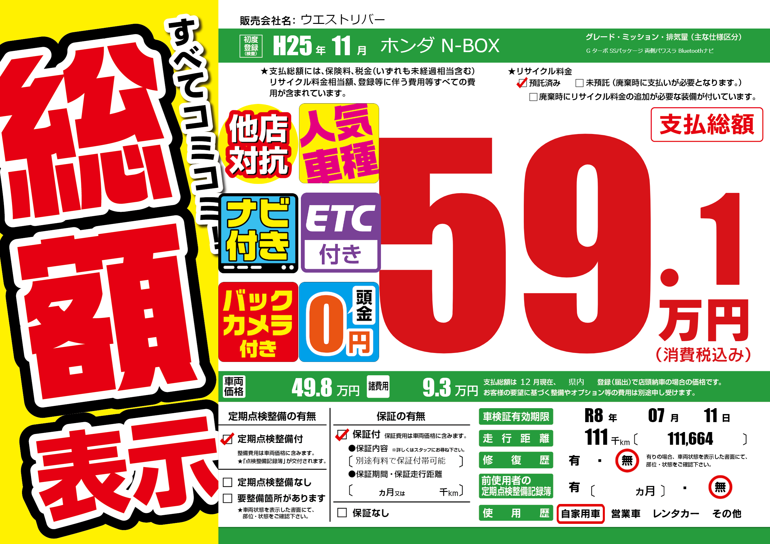 | 走行キロ | 11.1万km | 初年度登録 | H25年11月 |