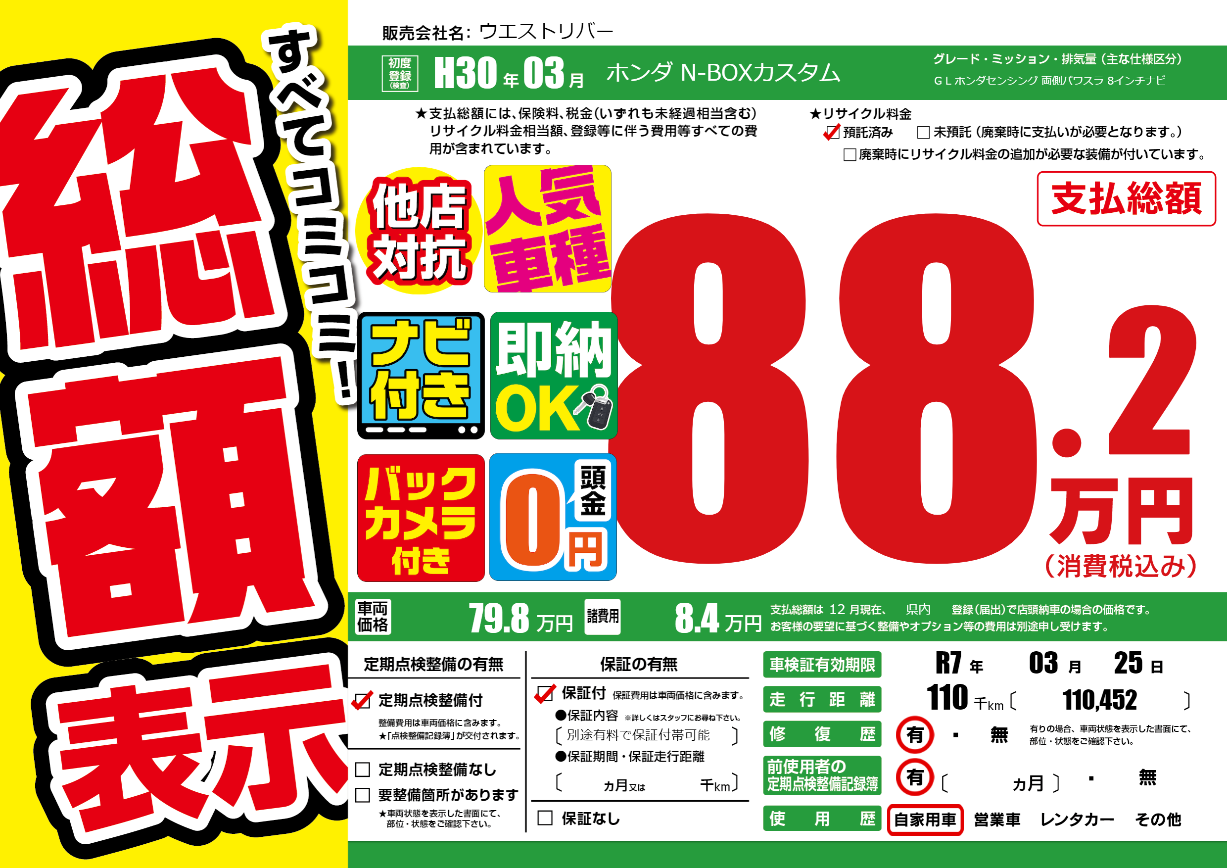 | 走行キロ | 11万km | 初年度登録 | H30年03月 |