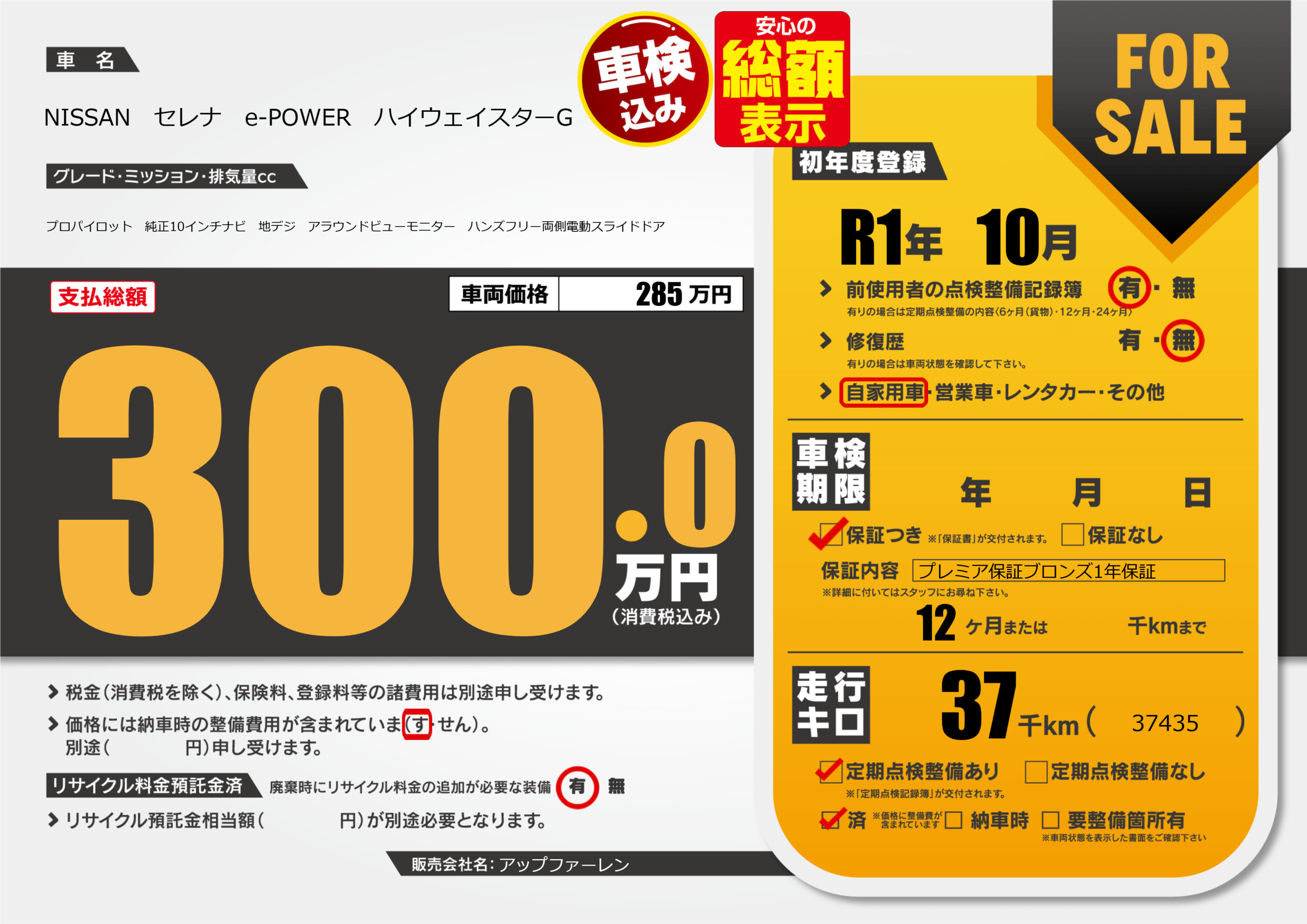 | 定期点検整備 | 定期点検整備あり 定期点検整備済み | ||