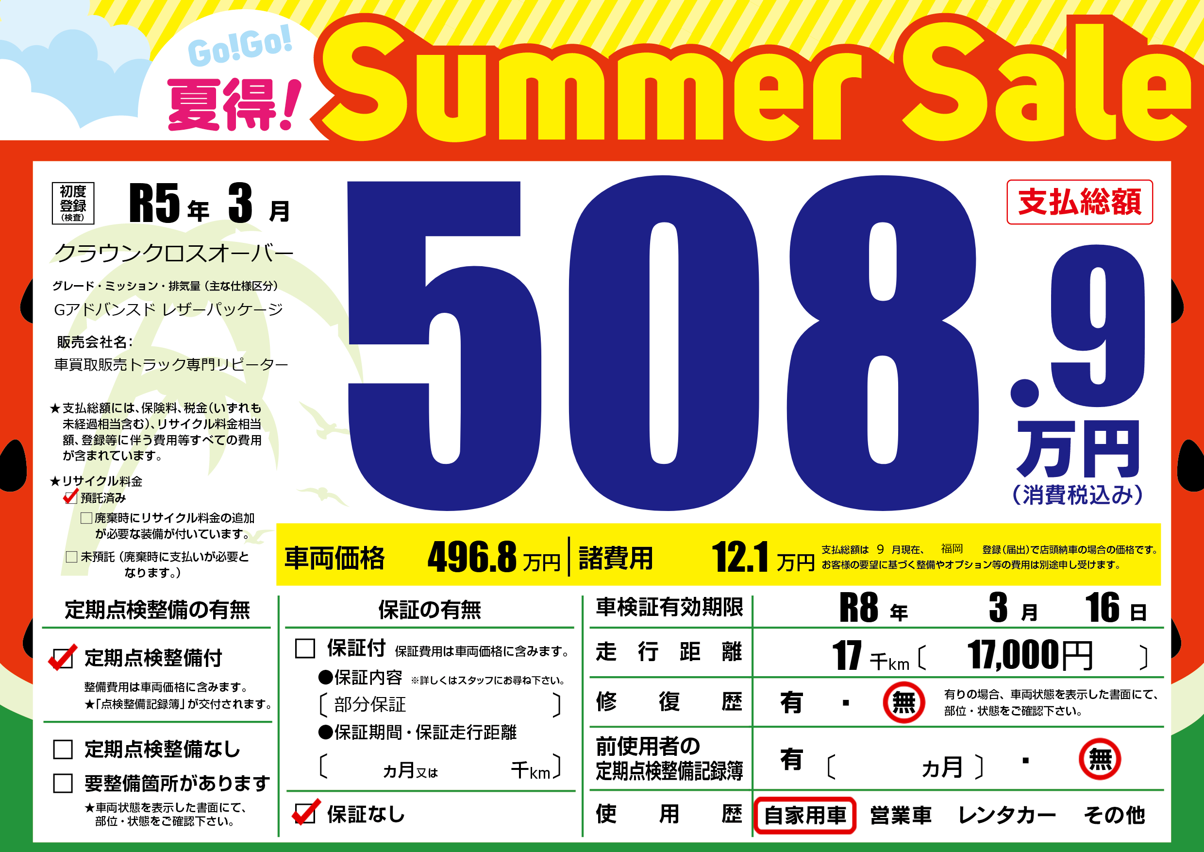 保証なし 保証内容(部分保証) ---ヶ月または()千kmまで |