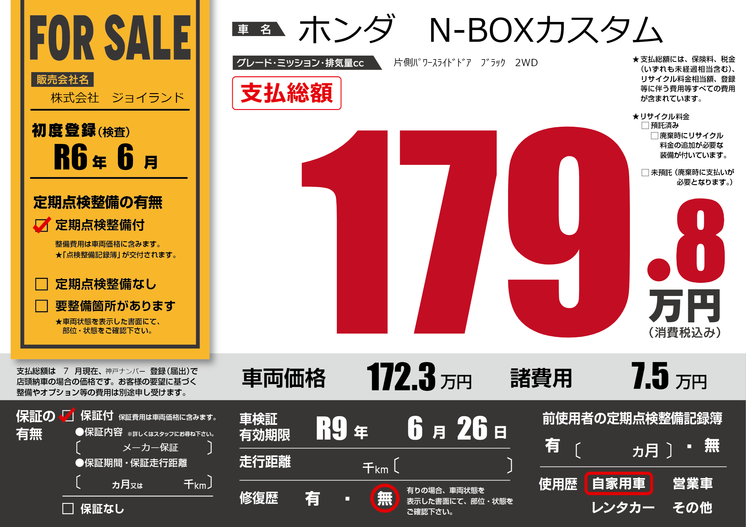 なし | 車検制限 | R9年6月26月 |