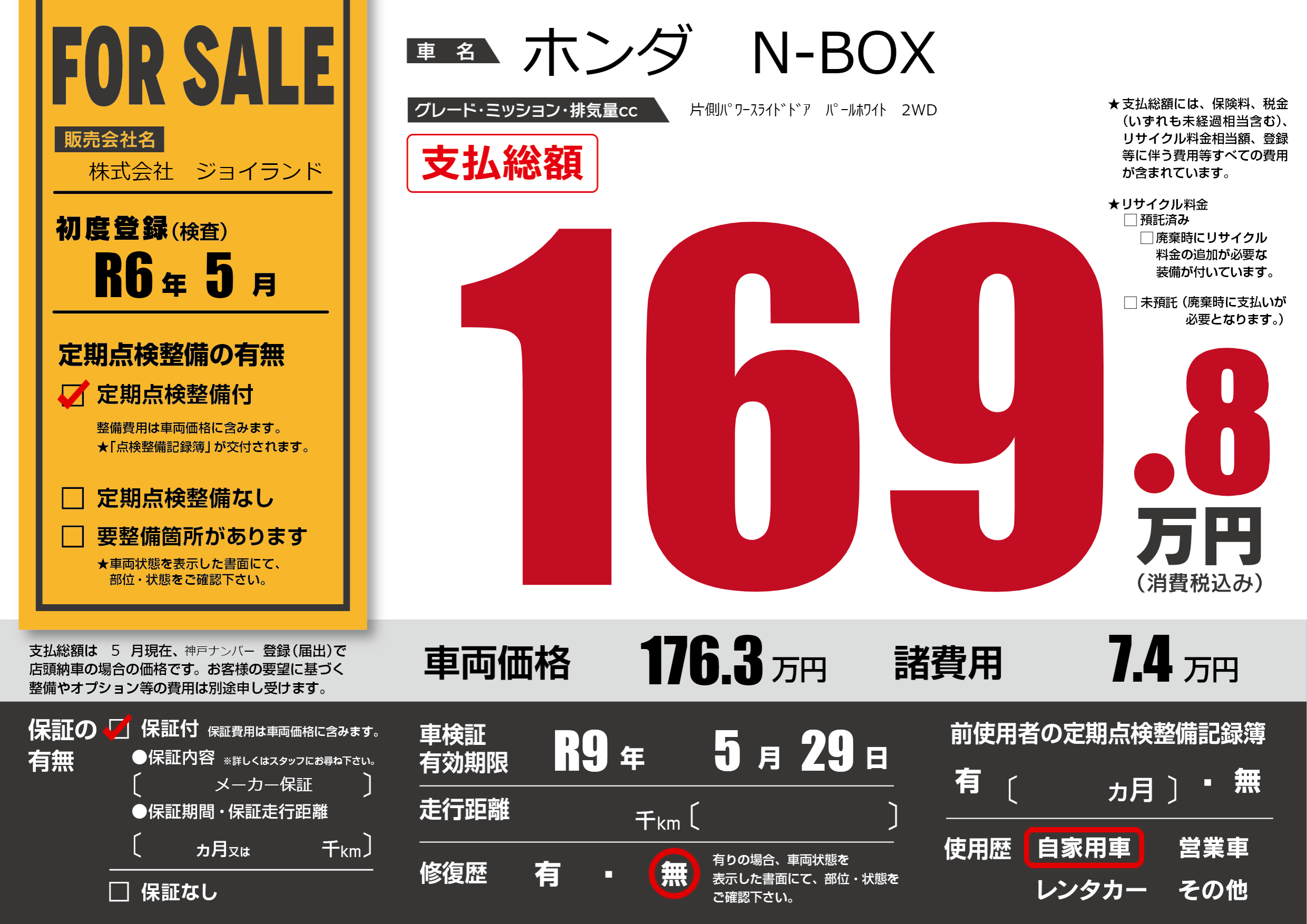 保証付き 保証内容( メーカー保証) ---ヶ月または()千kmまで |