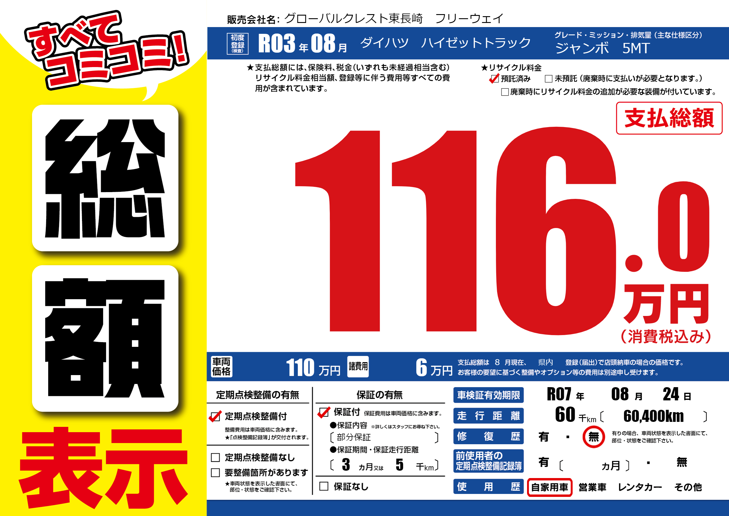 保証付き 保証内容(部分保証) 3ヶ月または(5)千kmまで |