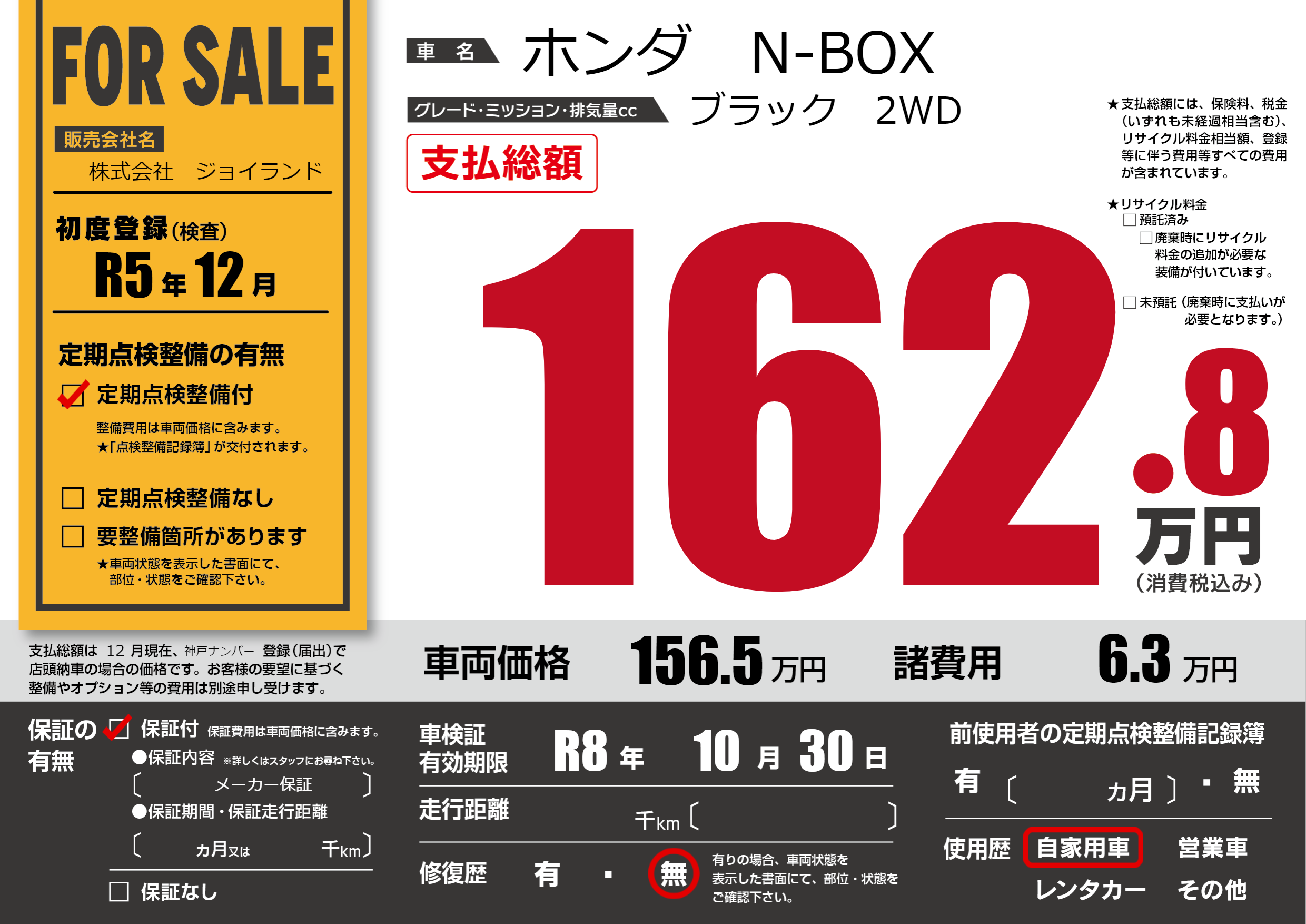 保証付き 保証内容( メーカー保証) ---ヶ月または()千kmまで |
