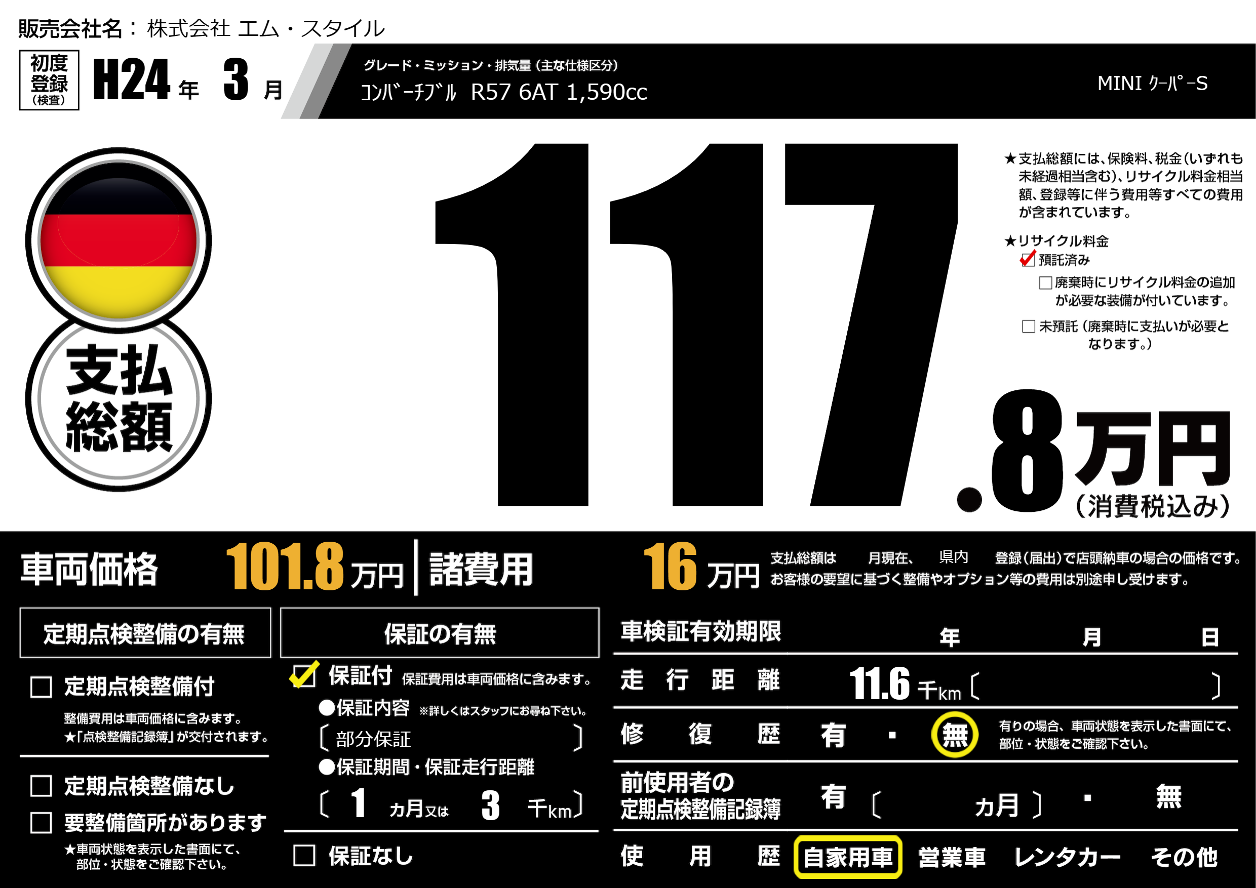 初年度登録 H24年3月