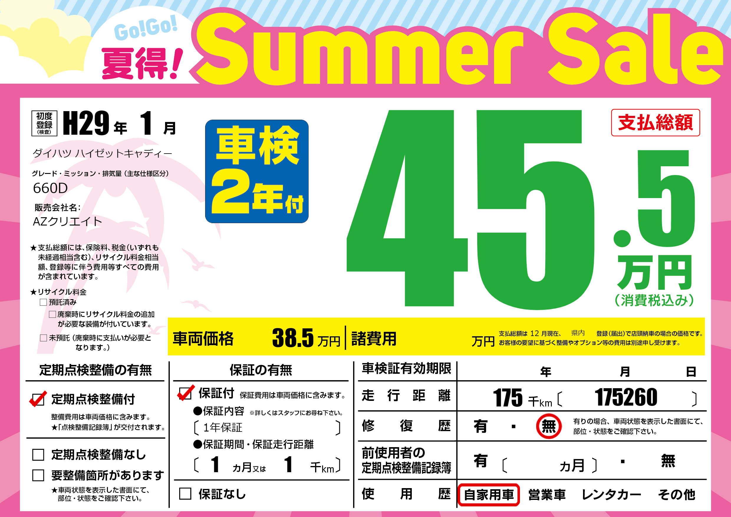 | 走行キロ | 17.5万km | 初年度登録 | H29年1月 |
