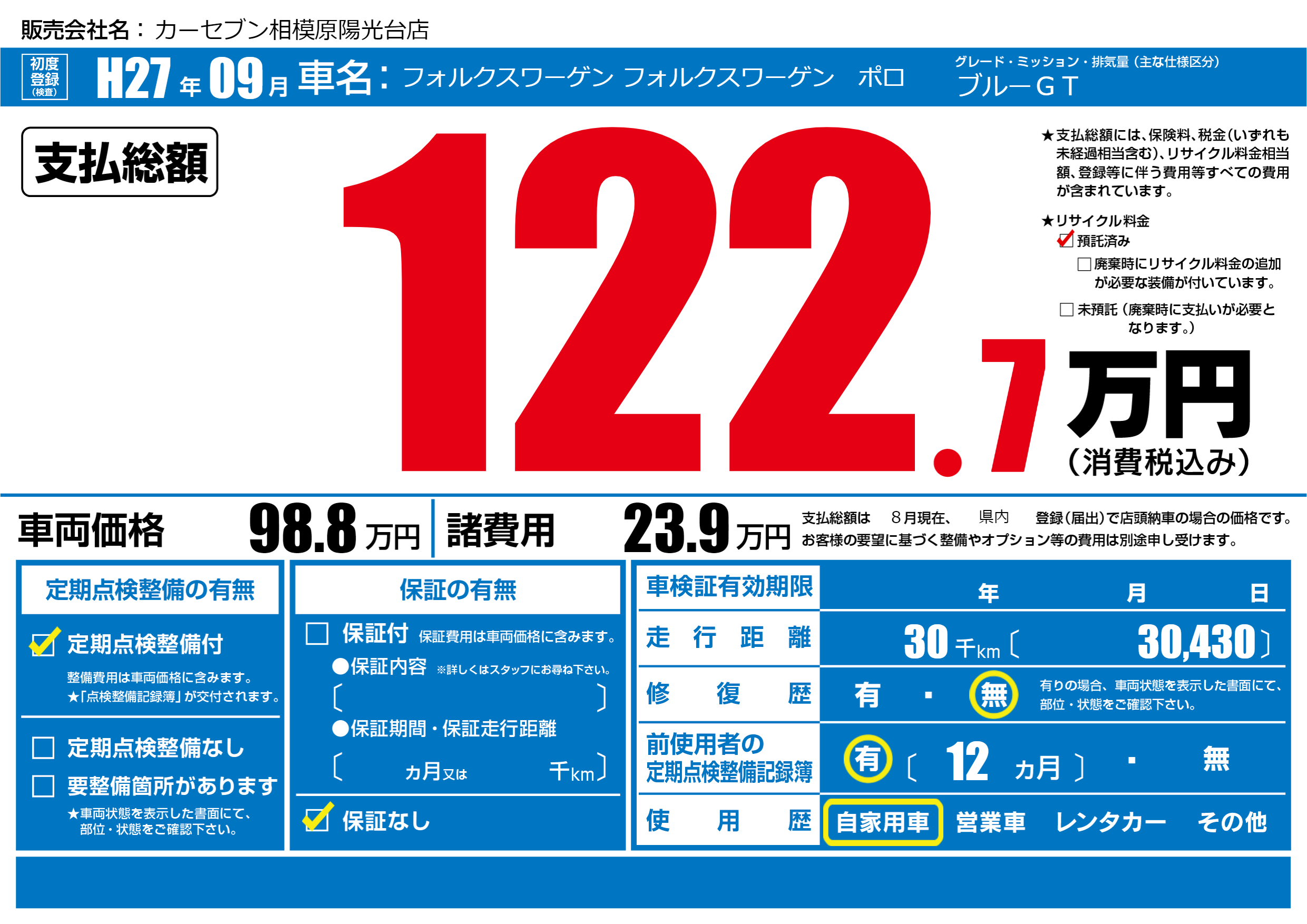 | 走行キロ | 3万km | ||