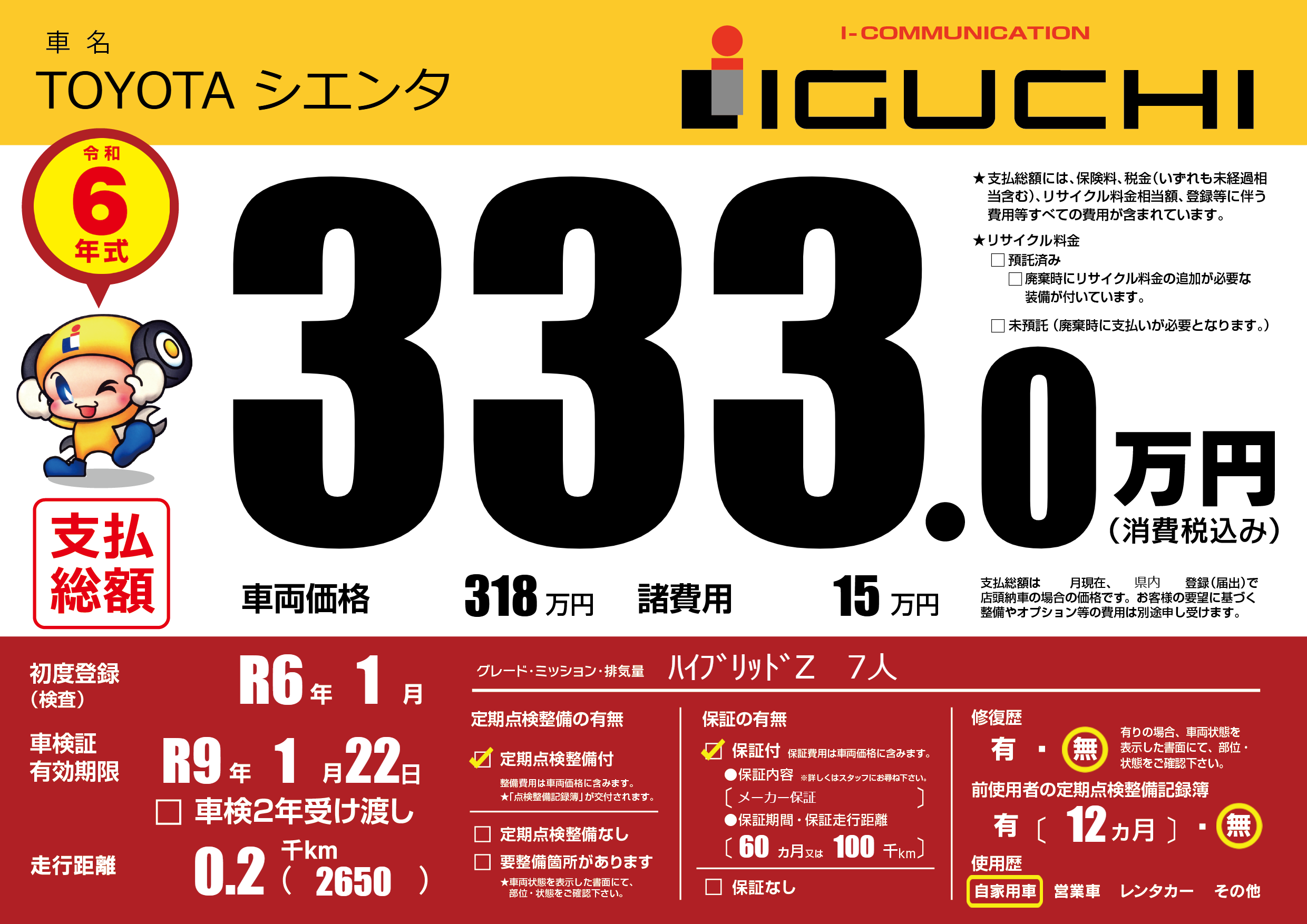 | 定期点検整備 | 定期点検整備あり | ||
