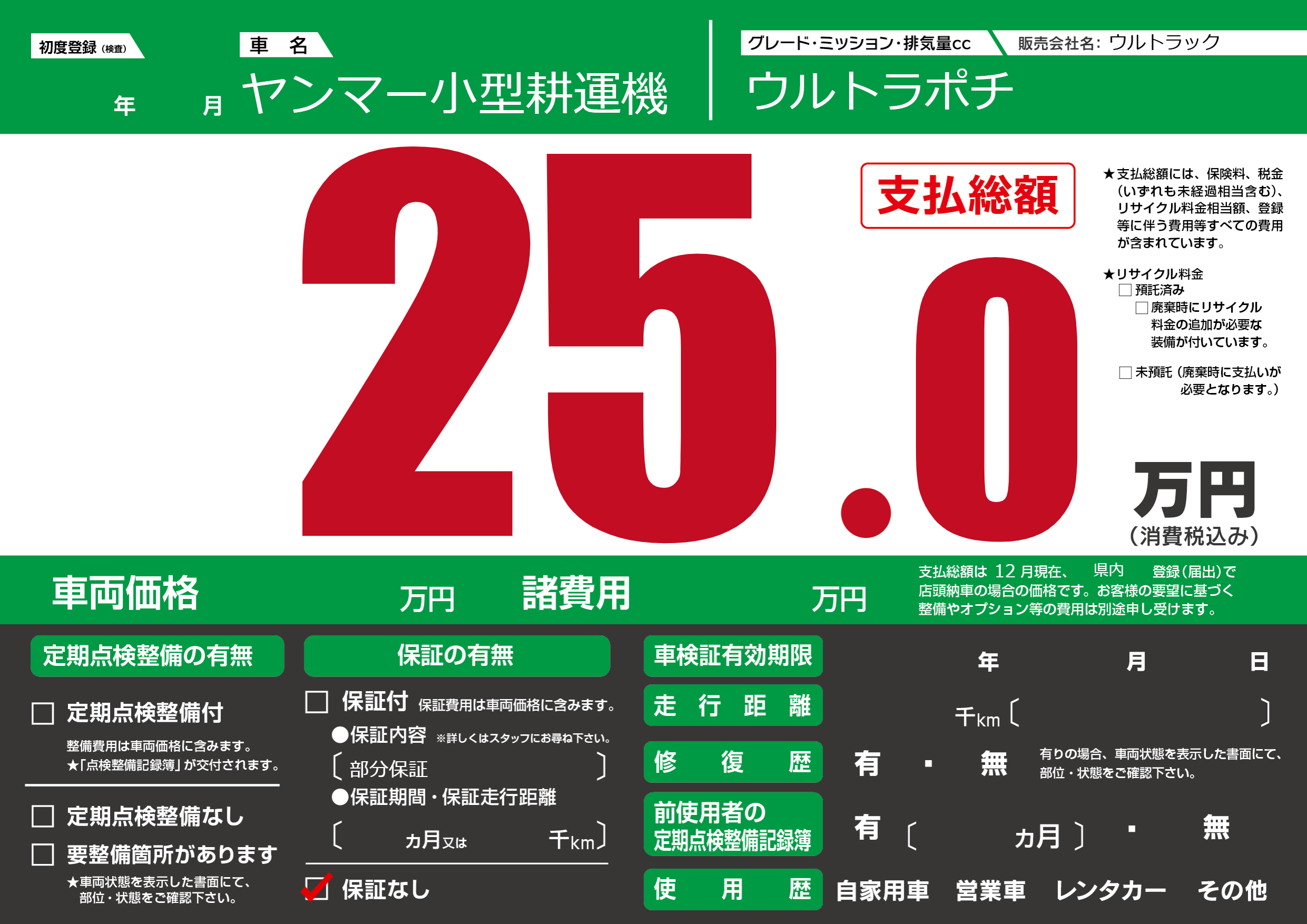 保証なし 保証内容(部分保証) ---ヶ月または()千kmまで |