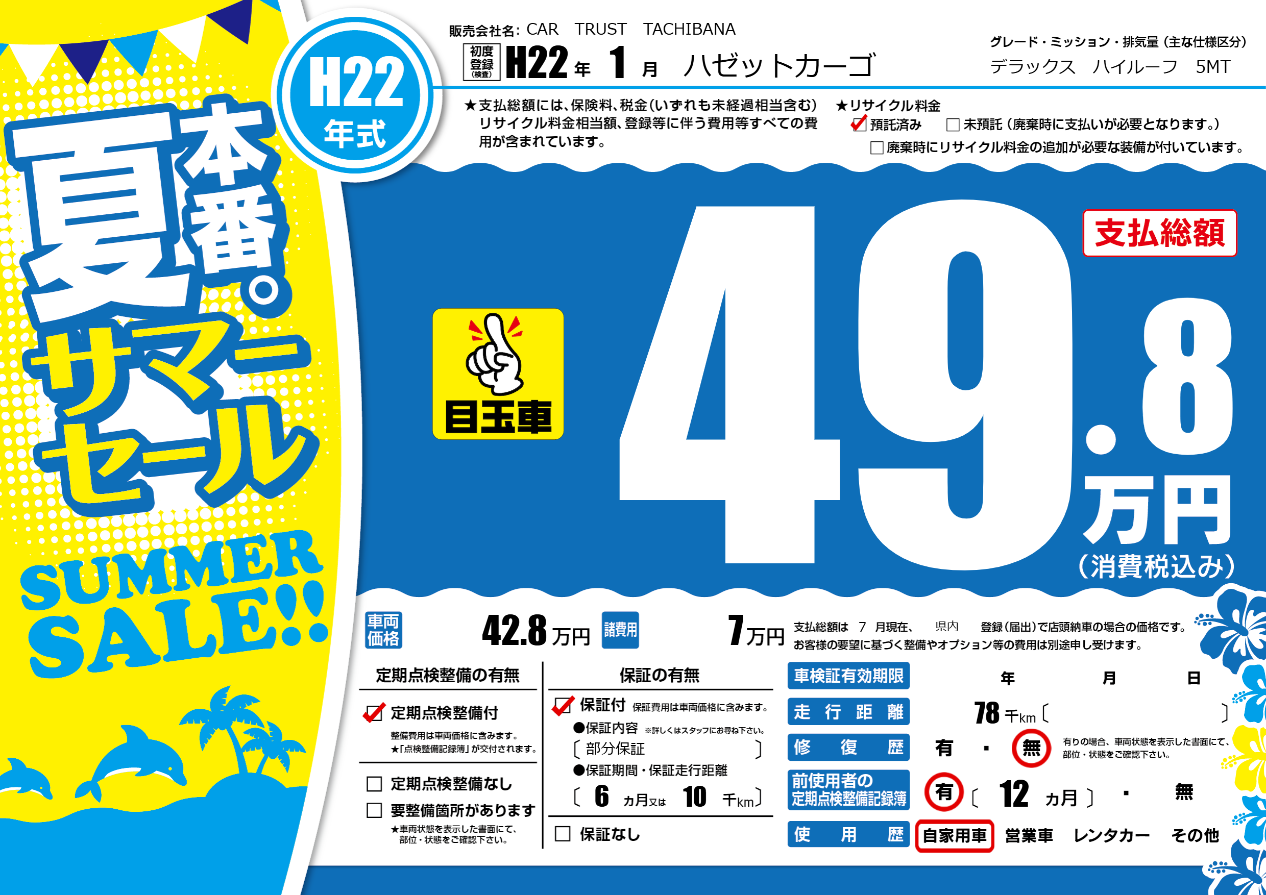 | 走行キロ | 7.8万km | 初年度登録 | H22年1月 |