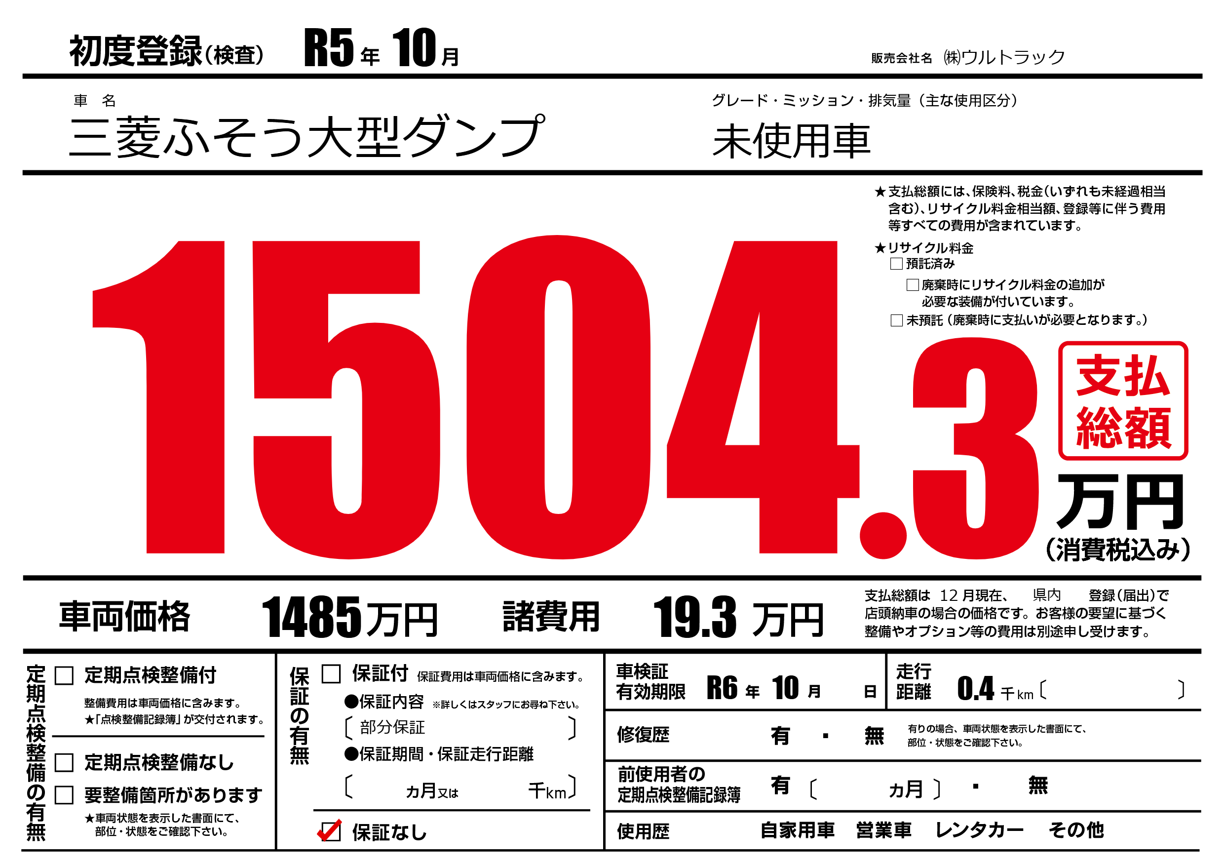 なし | 車検制限 | R6年10月---月 |