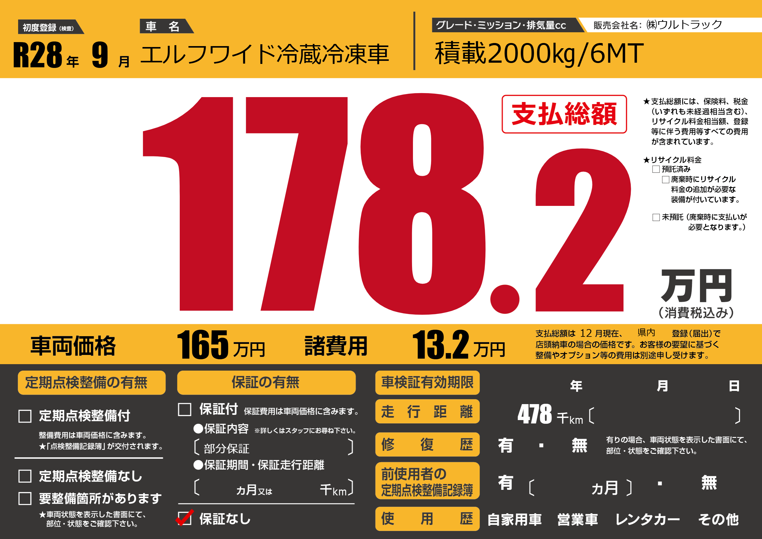 | 走行キロ | 47.8万km | 初年度登録 | R28年9月 |