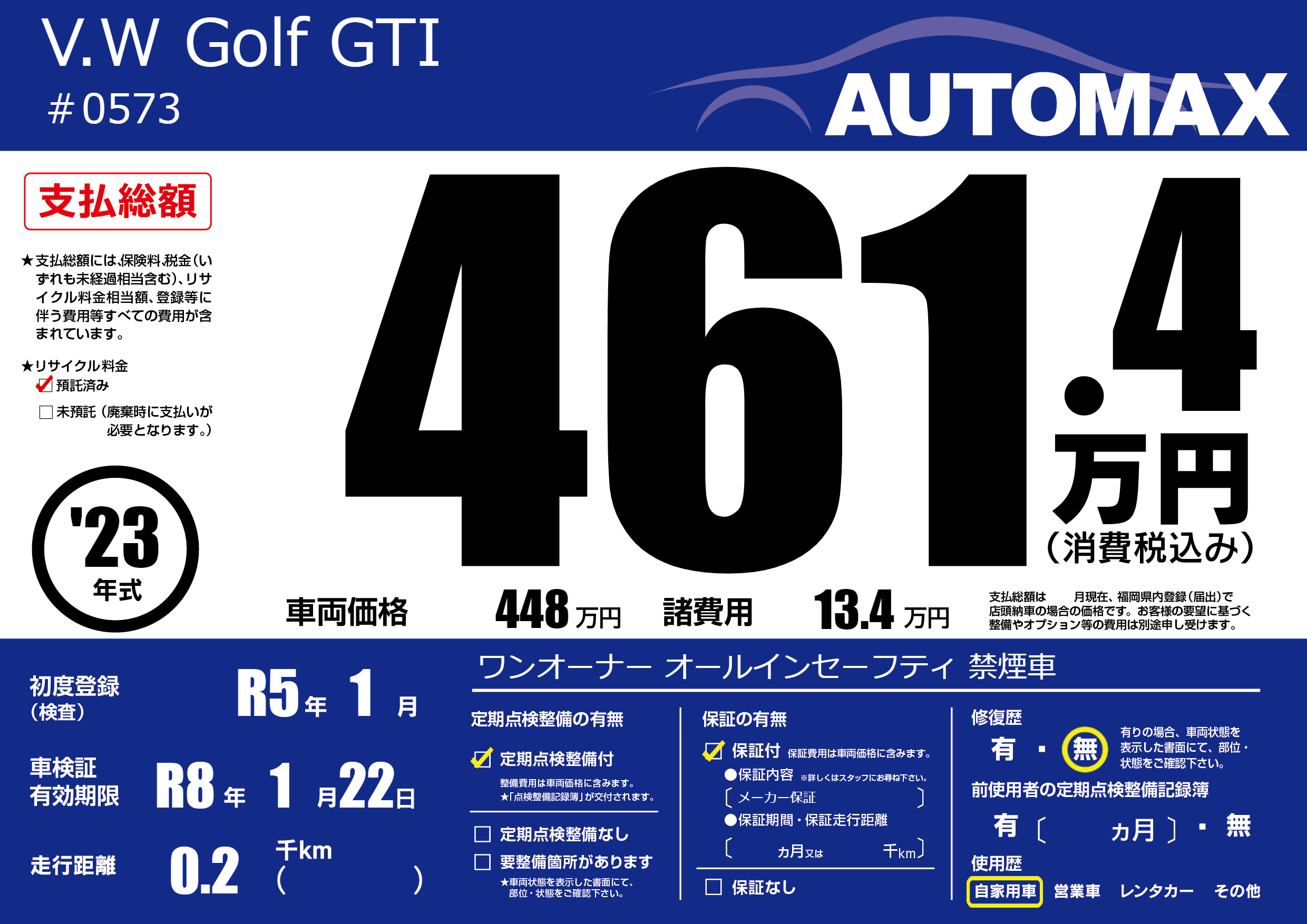 | 車名 | V.W Golf GTI | グレード ミッション 排気量 |