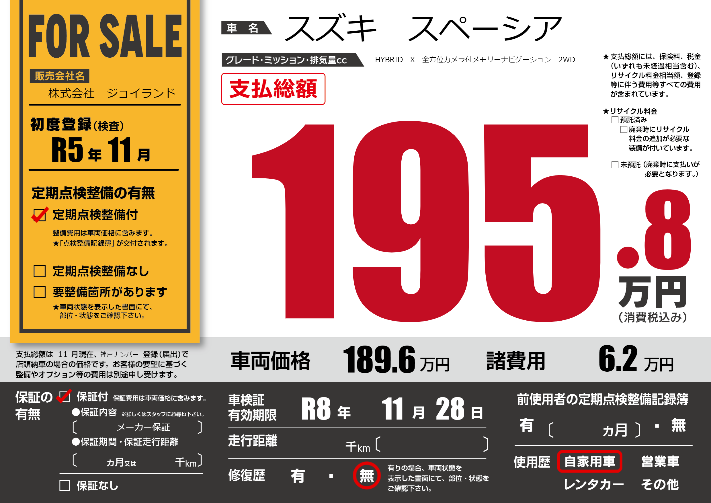 | 走行キロ | - | 初年度登録 | R5年11月 |