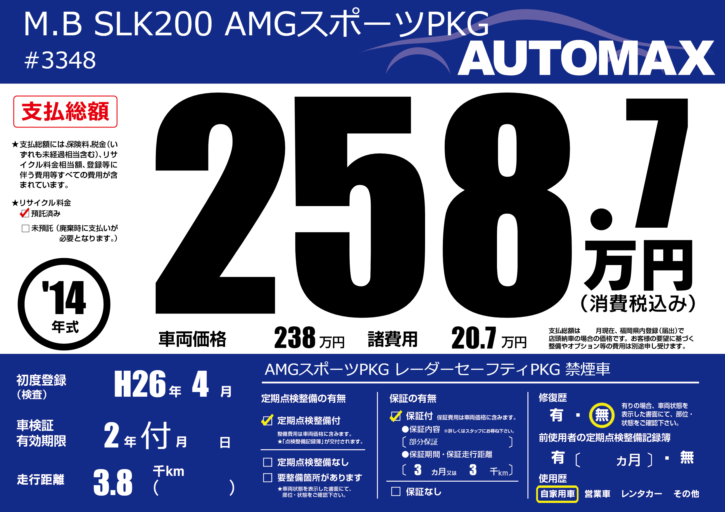 なし | 車検制限 | 2年付月---月 |