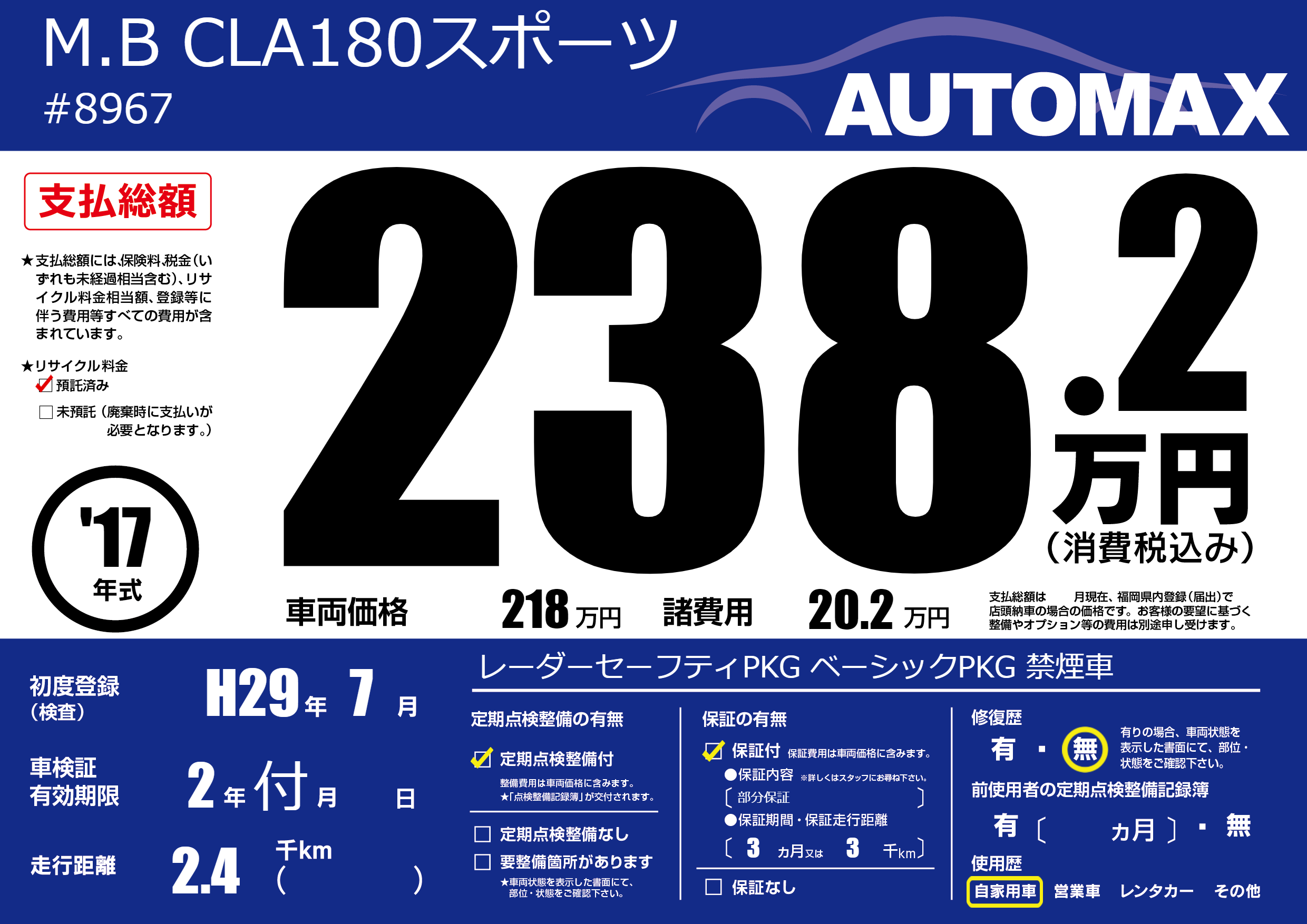 なし | 車検制限 | 2年付月---月 |